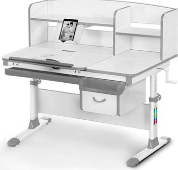 Детский стол с электроприводом Mealux Electro 730 + надстройка столешница белая / накладки на ножках серые