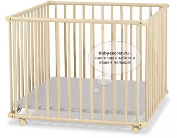 Приспособление для защищенного времяпровождения закрыто по периметру и ограничивает свободу передвижения малыша бортиками. Оно помогает ненадолго отвлечься от ребенка, при этом не переживая о его безопасности.