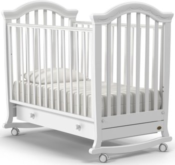 Детская кроватка с поперечным маятником Гандылян Тиффани декор пуговицы Белая ночьДетская кроватка с поперечным маятником Гандылян Тиффани декор пуговицы Белый