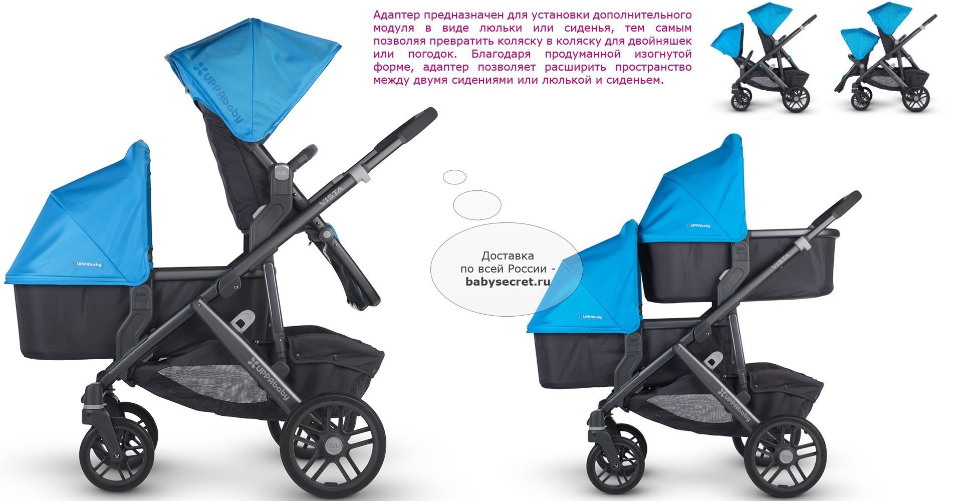 Приятные особенности адаптера UPPAbaby Vista Модель VISTA 2015-2018 позволяет несколько конфигураций сидений. Верхний адаптер на VISTA 2015-2018 создает больше пространства между основным и дополнительным сиденьями.