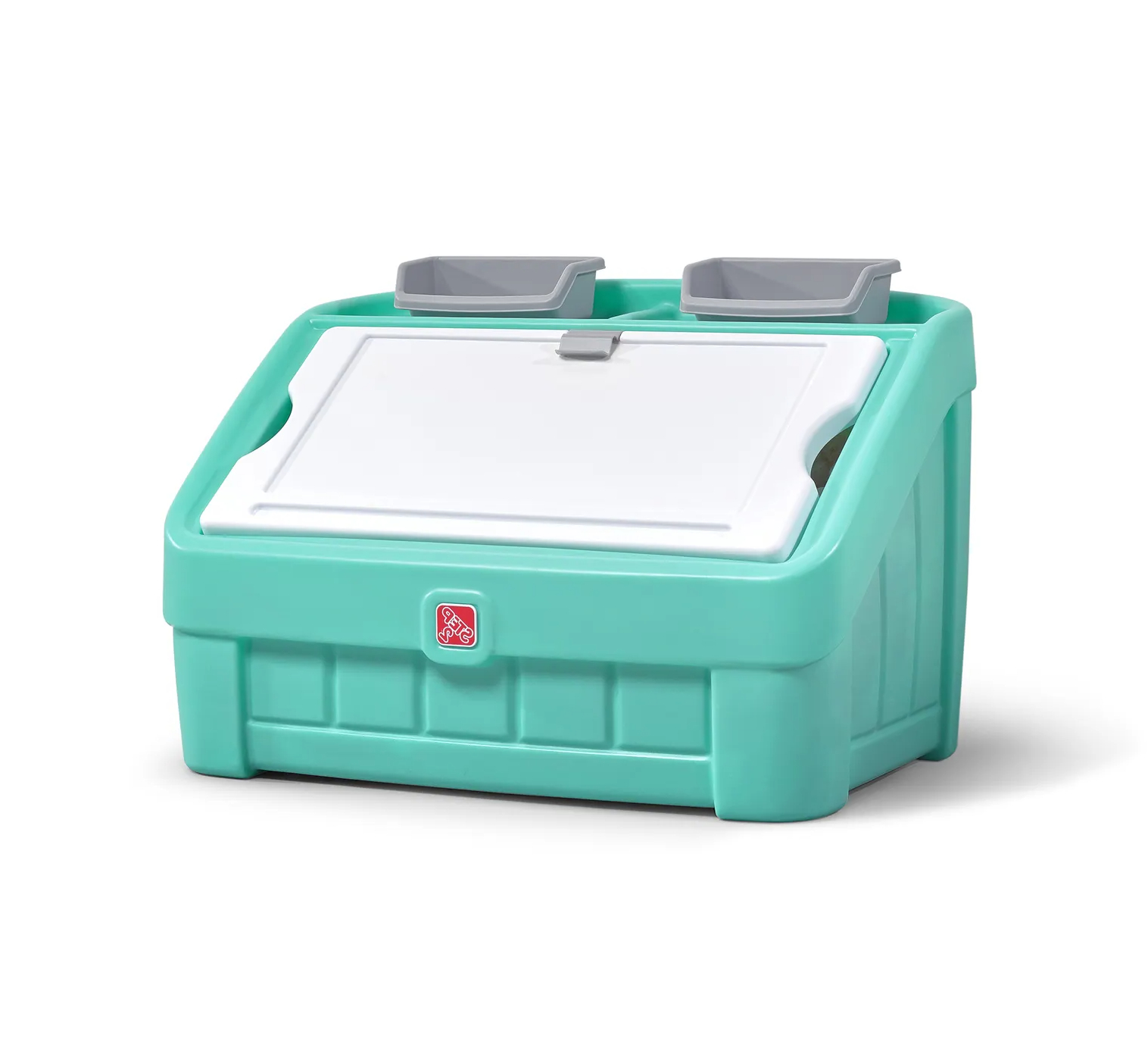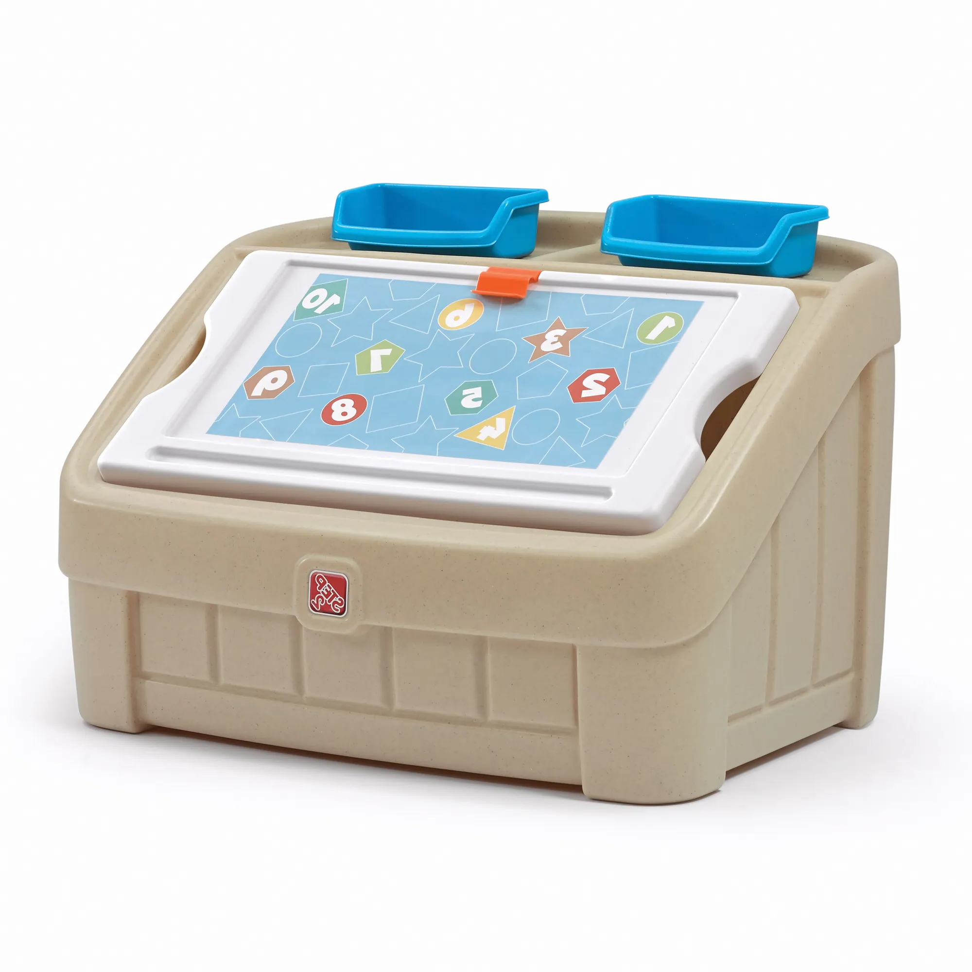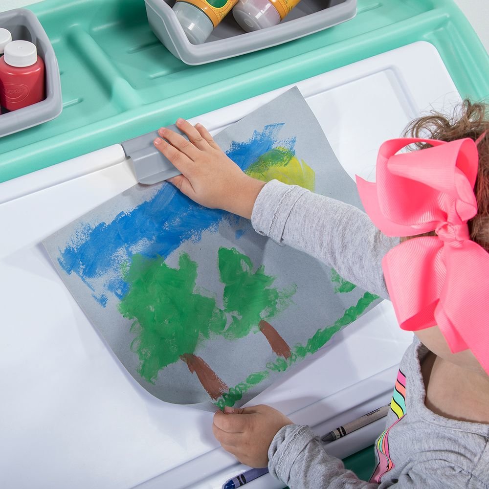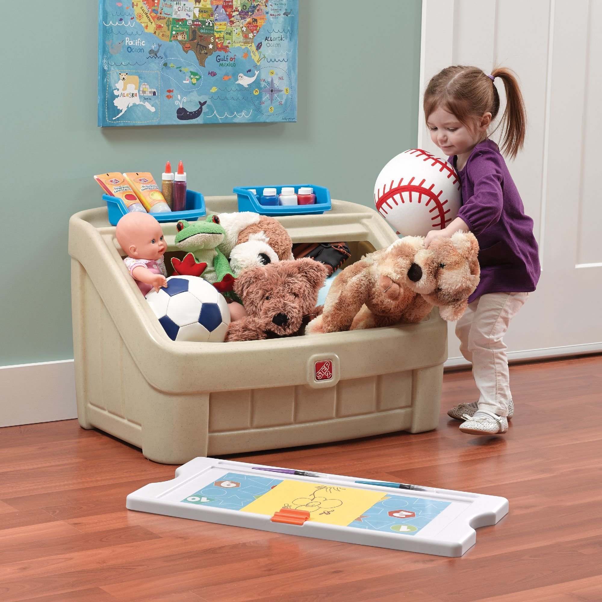 Приятные особенностиЯщика для игрушек "Два в одном" Step 2 : Навести порядок в своей комнате, а затем порисовать, предварительно закрепив листок бумаги на мольберте, который по совместительству также является и крышкой для ящика с игрушками, вам позволит этот уникальный предмет интерьера от Step 2.
