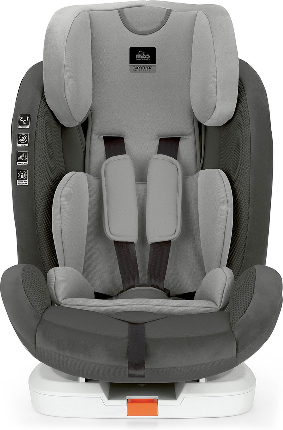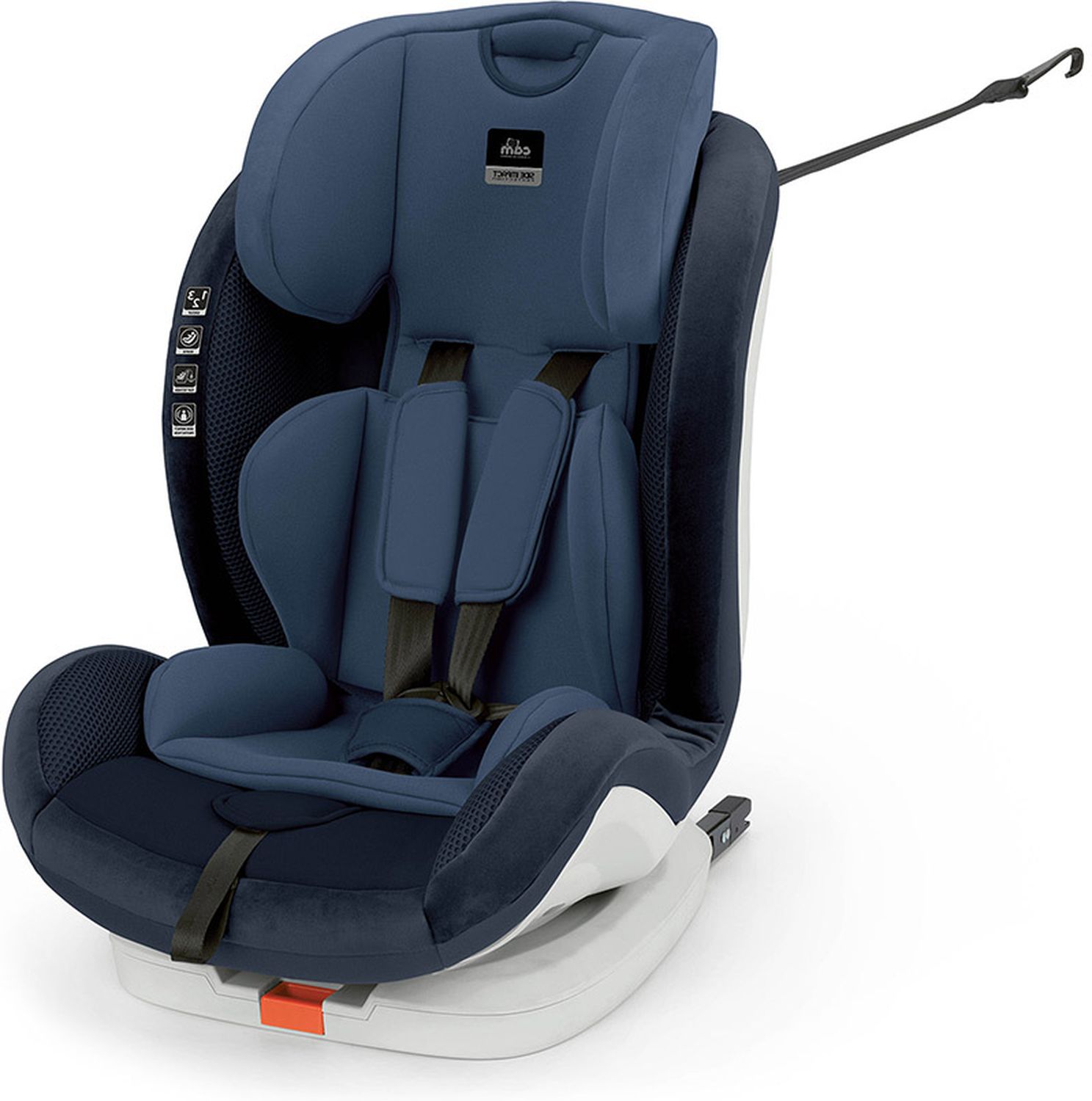 Приятные особенности: боковая защита головы анти-шок, мягкий вкладыш, регулирующийся по высоте подголовник с боковой защитой для головы, 5-ти точечный ремень безопасности с мягкими плечевыми накладками и разделителем для ножек, регулирующаяся по наклону спинка, возможность регулировки 5-ти точечных ремней безопасности по высоте. Автокресло устанавливается в автомобиле всегда по ходу движения: в группе 1 безопасность обеспечивается с помощью универсальной системы крепления Isofix (фиксаторы возможно отсоединить с помощью рычага на основании) и Top Tether – верхнего страховочного якоря (длина 2м), расположенного в верхней части спинки и предотвращающего опрокидывание автокресла; в группах 2-3 безопасность обеспечивается с помощью системы крепления easy fix и штатного ремня безопасности автомобиля, для которого предусмотрены направляющие. Съемный текстиль можно стирать в деликатном режиме при 30%.