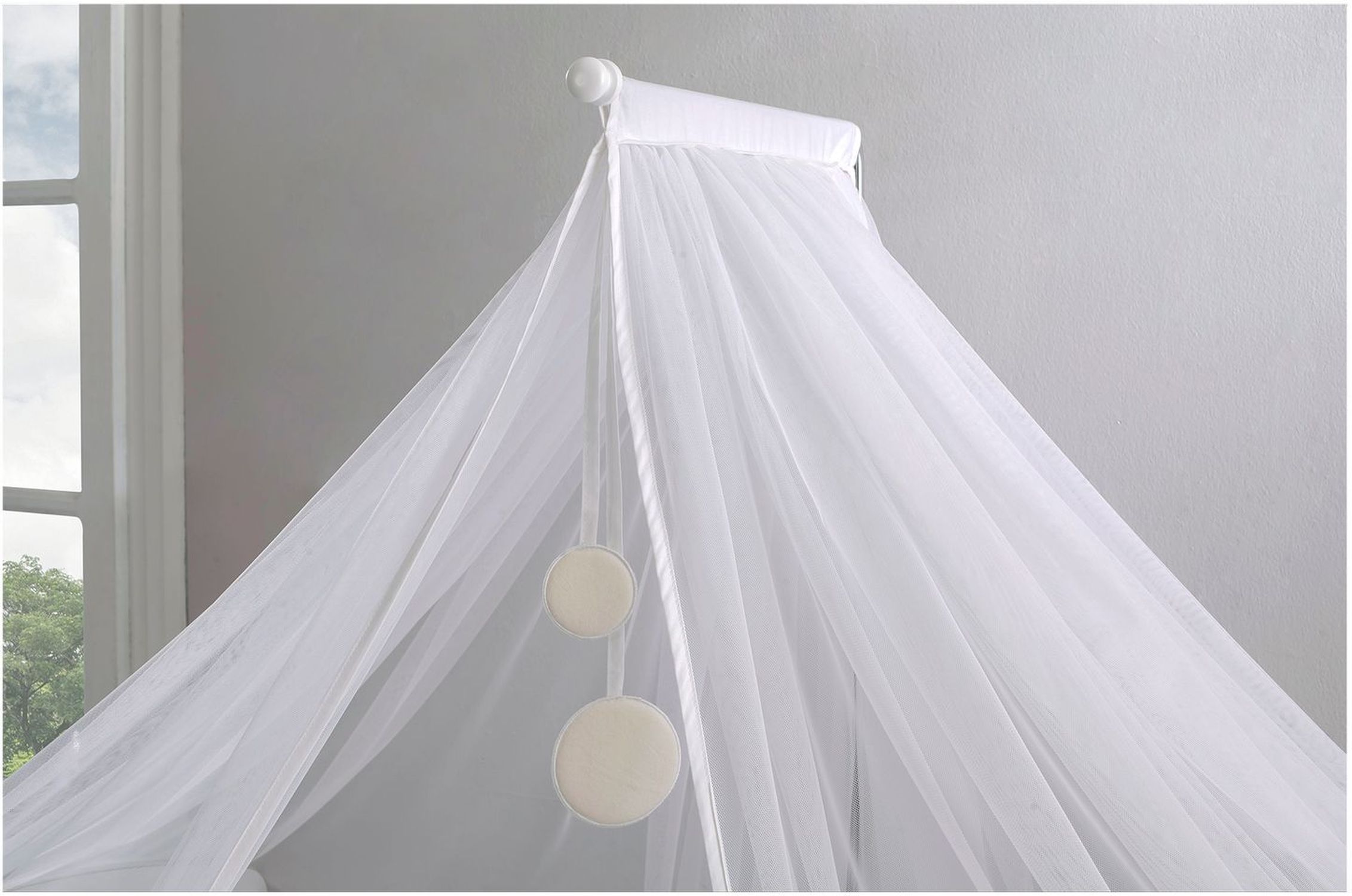 Приятные особенности:Прозрачный и легкий балдахин Cilek Simple Baby отлично защитит чуткий сон младенца от назойливых насекомых или яркого солнечного света. Изготовлен из натурального полиэстера, мягкого и нежного на ощупь. Материал изделия прекрасно пропускает воздух, безопасна для здоровья ребенка и не требует частого проглаживания. Белоснежный оттенок и легкая ткань создадут ощущение тонкого невесомого облака, спустившегося с далекого неба на землю. Малыш оценит вашу заботу спокойным отдыхом без капризов и частого плача. Идеально для полного дополнения к детской кровати и обустройства спальни как будущего рыцаря, так и маленькой прекрасной принцессы. Обезопасьте сон ребенка красивыми и полезными аксессуарами.