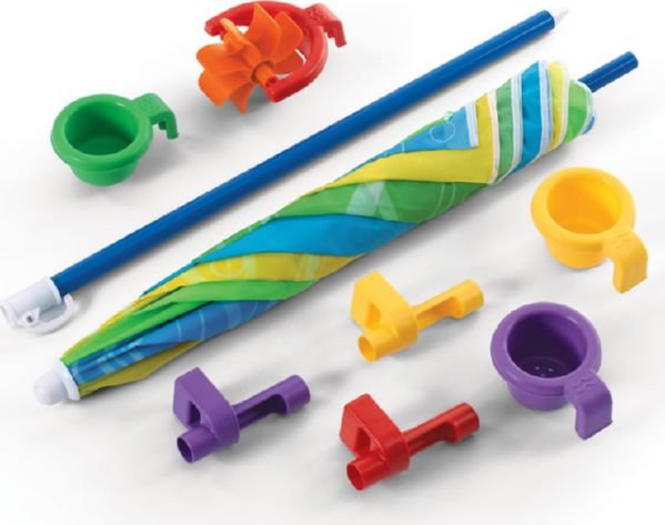 Технические характеристики:Комплект: бассейн, зонт, 3 воронки и мельница. Возраст: от 2 лет. Состав: пластик. Вес: 1.8 кг. Высота зонтика от солнца: 101,6 см. Вмещает: 45,4 литра воды или 74,8 кг песка (не входят в комплект). Размер бассейна: 19,7 х 95,3 х 95,3 см. Размер с зонтом: 127 х 101,6 х 101,6 см.