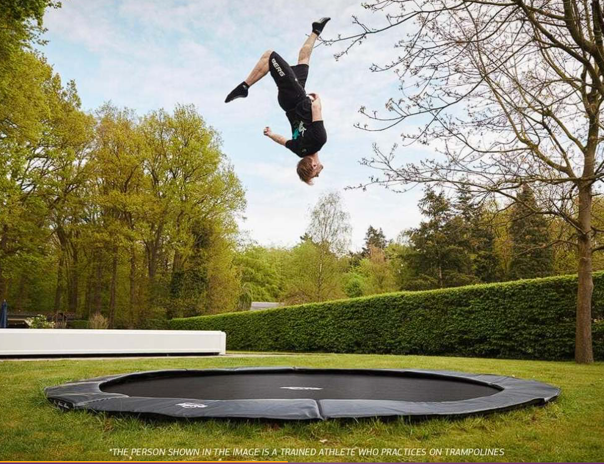 Приятные особенности:Berg Sports Champion FlatGround 430 Green – инновационный пружинный батут для детей в возрасте от 6 лет, предназначенный для установки в грунт. Он заканчивается краем газона на уровне земли, что позволяет идеально гармонировать с садом и ландшафтным дизайном. Он будет практически не заметен на поверхности земли и на него легко забираться.Защитная кромка опирается на специальные демпфирующие ленты, наличие которых облегчает отвод воздуха из-под батута. За счет этого снижается сопротивление во время прыжков и устраняется трепетание защитной кромки на раме. Рама выполнена по запатентованной технологии FlatGround, легко собирается и монтируется.Данные батуты оснащены улучшенными пружинами Twinspring Gold V-образной формы с большим количеством витков. Конструкция изделия имеет высокую прочность и рассчитана на использование при любых погодных условиях, так как не боится солнечного излучения и влаги.Прыжковое полотно выполнено по технологии AirFlow, за счет чего пропускает воздуха на 50% больше. При этом прыгать можно намного выше и комфортнее!