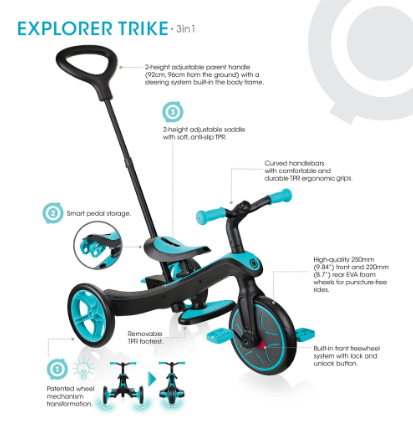Беговел-велосипед 4 в 1 Globber Trike Explorer ГолубойБеговел-велосипед 4 в 1 Globber Trike Explorer ЗелёныйБеговел-велосипед 4 в 1 Globber Trike Explorer КрасныйБеговел-велосипед 4 в 1 Globber Trike Explorer Мятный