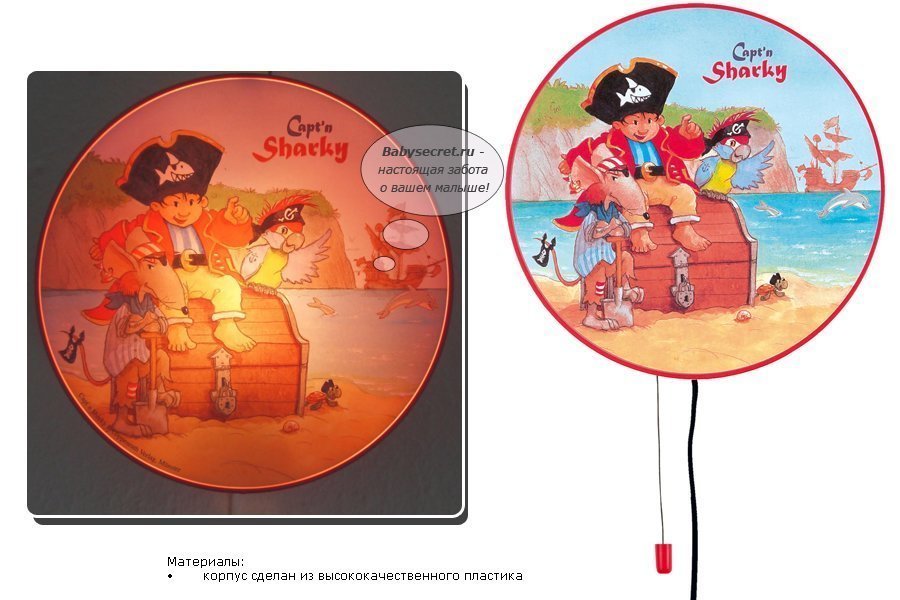 Приятные особенности бра Spiegelburg Capt'n Sharky: на палубу, и полный вперед! Великолепный настенный светильник из коллекции Capt'n Sharky, посвященный любимому детскому герою – пирату, авантюристу и искателю сокровищ. Бра станет отличным украшением комнаты Вашего ребенка и создаст в детской удивительную атмосферу дальних странствий и захватывающих приключений.