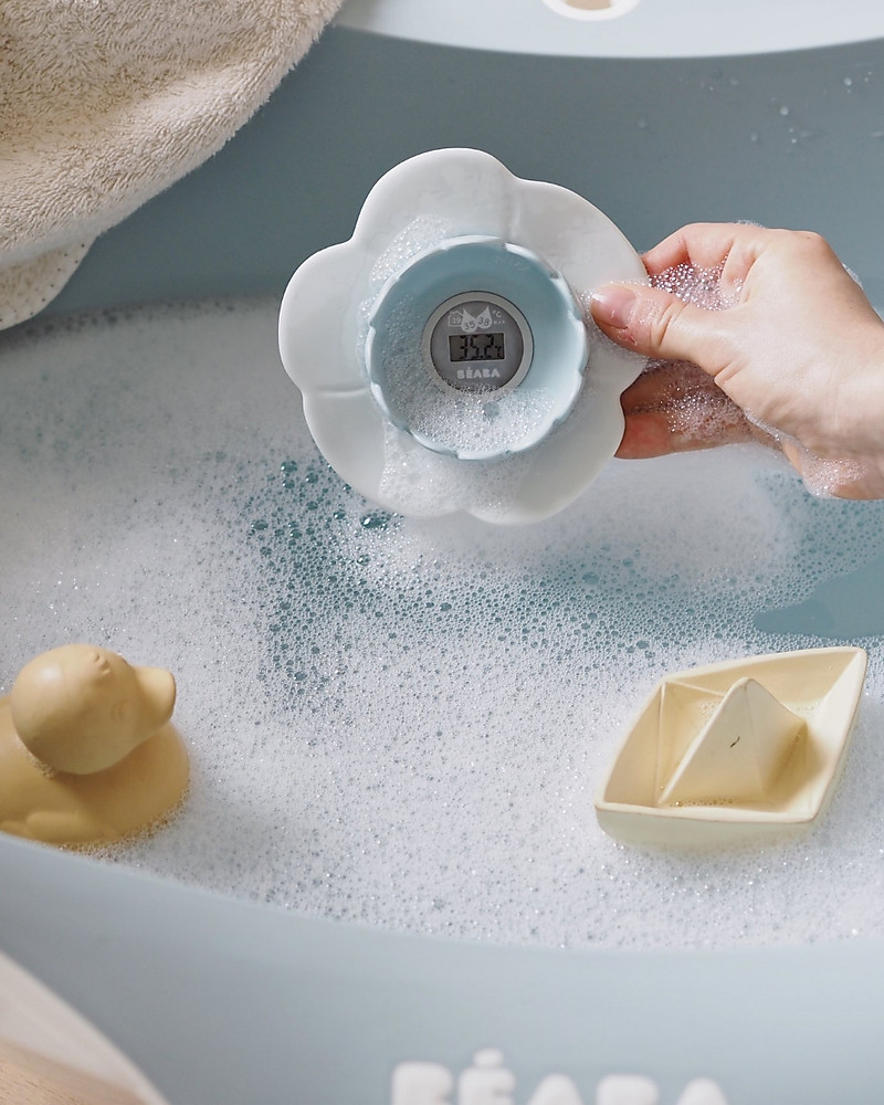 Приятные особенности термометра для воды и воздуха Beaba Lotus:симпатичный термометр предназначен для измерения температуры вокруг вашего ребенка. Выполнен он в виде цветка лотуса и в принципе предназначен для измерения температуры в воде. Дизайн термометра позволяет ему с легкостью держаться на воде, но вы можете также положить его на полочку и следить за температурой в помещении. Beaba Lotus станет прекрасной игрушкой для малыша (например, во время купания). Термометр измеряет температуру благодаря электронному индикатору, расположенному на стебле. Не забудьте перемешать воду для точных показателей.