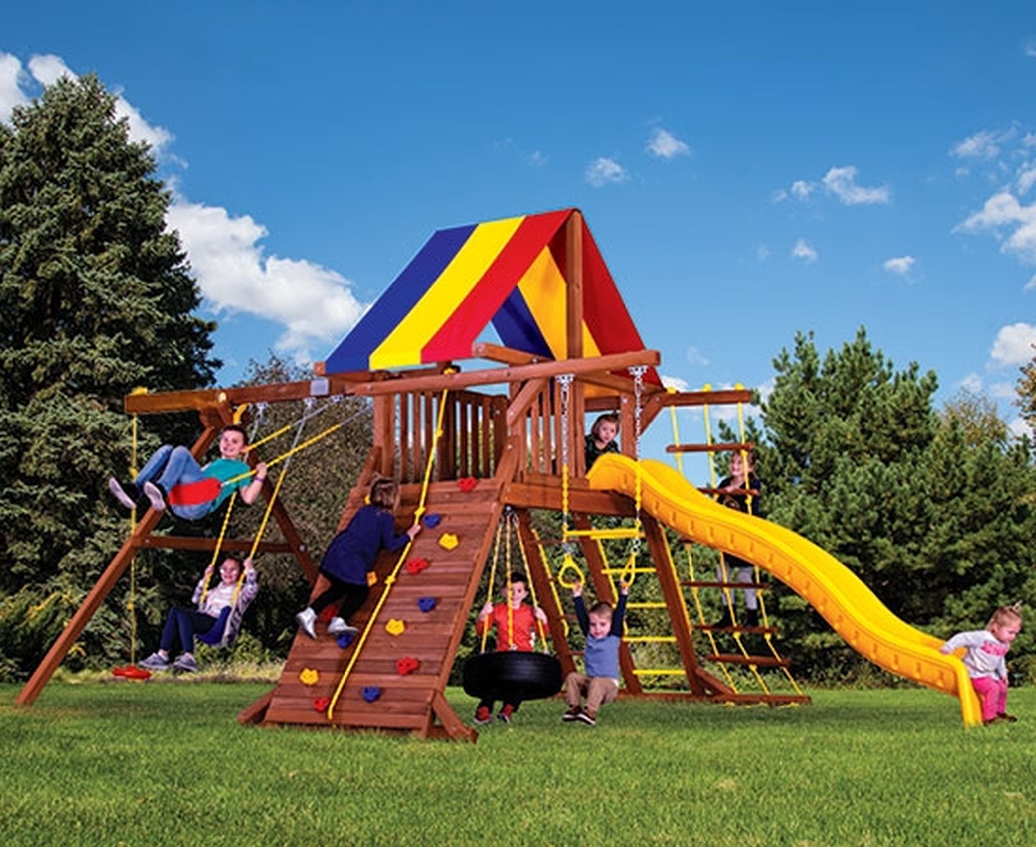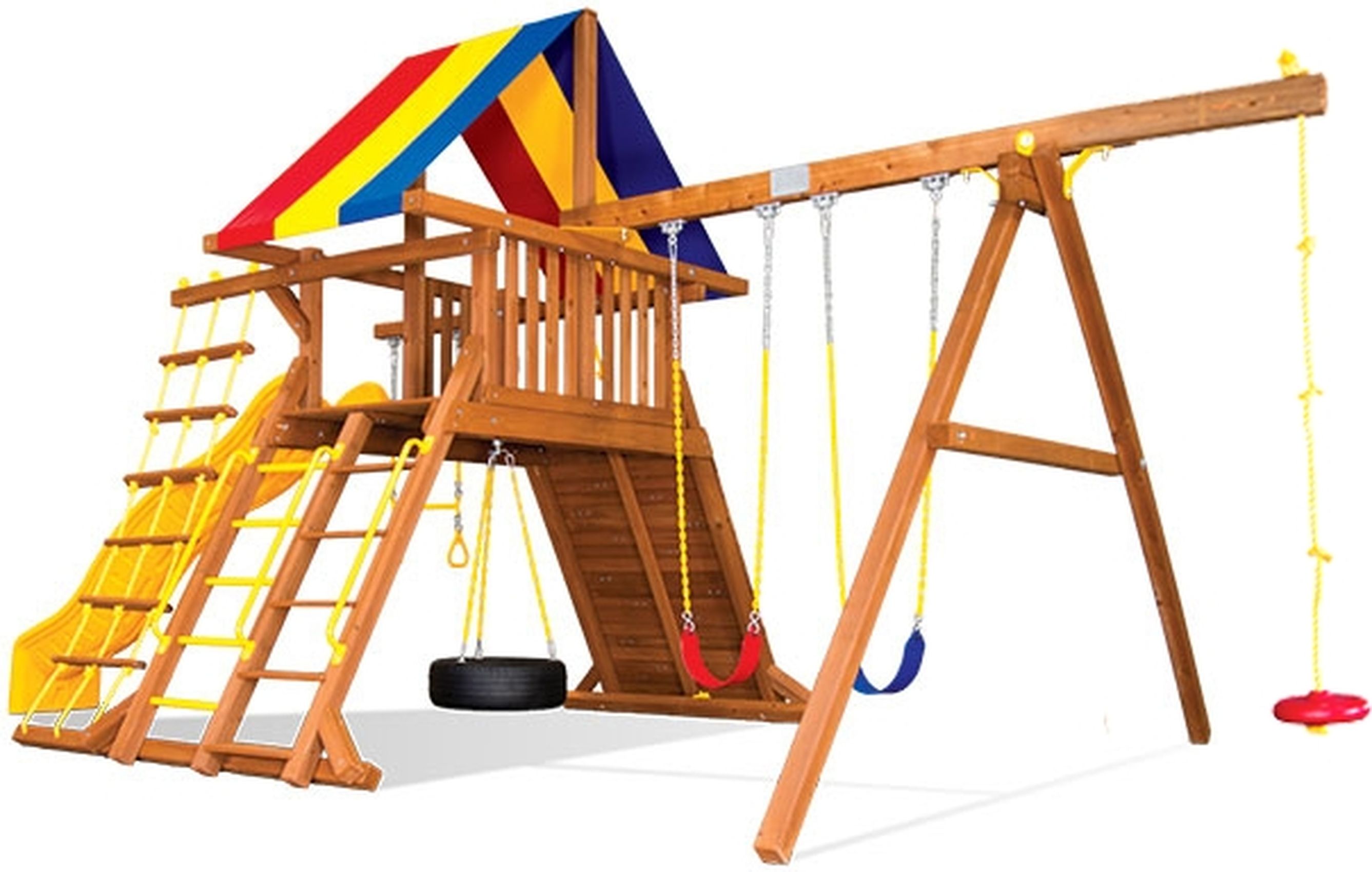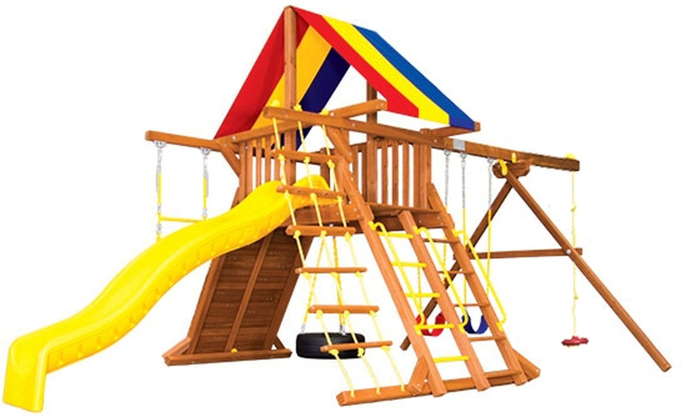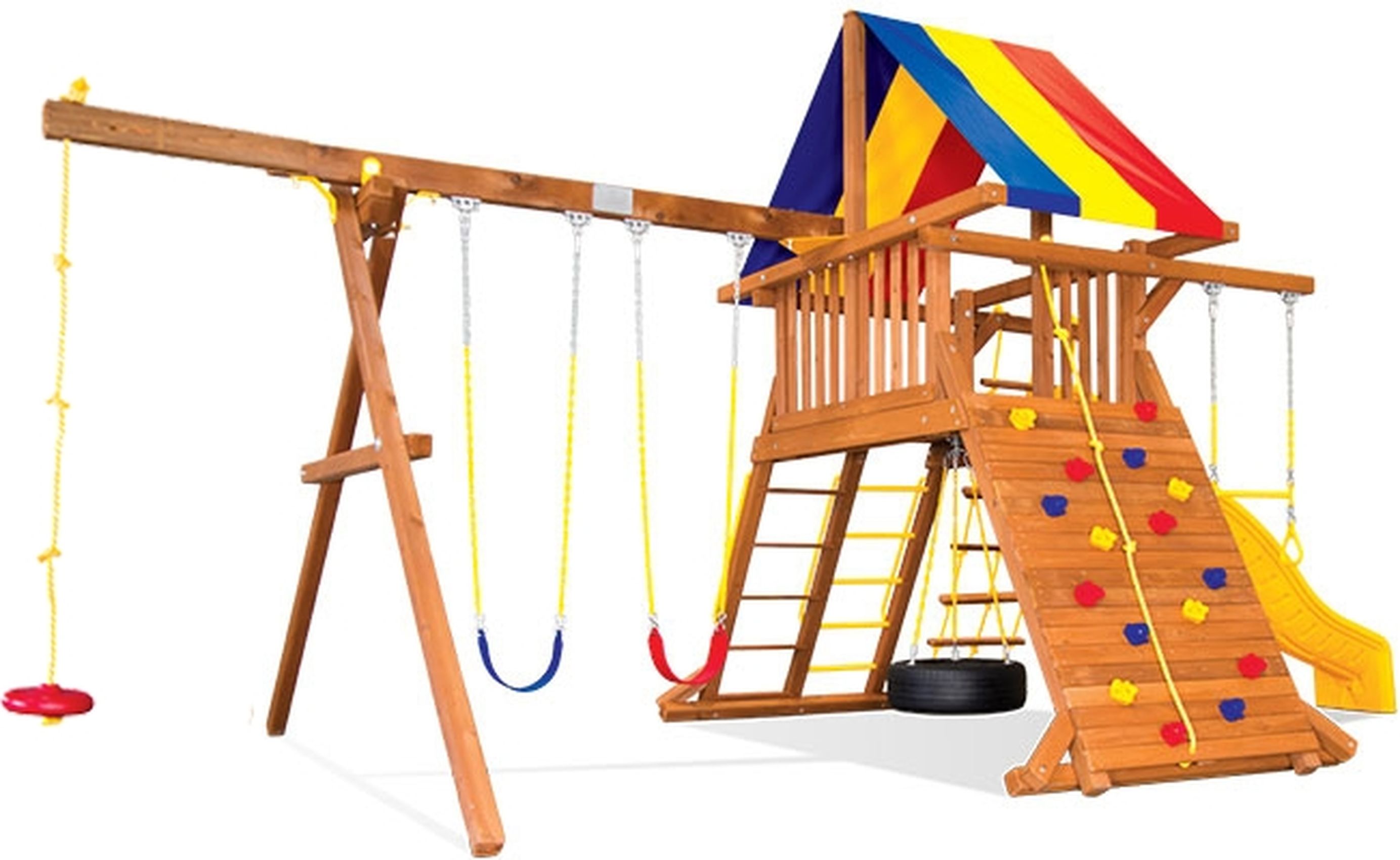Приятные особенности :Просторная компактная площадка, содержащая в себе все наиважнейшие элементы — горку, качели, скалодром, лесенку и капитанский мостик в мгновение ока превратиться в корабль, рассекающий волны, или в замок, где прекрасная принцесса ждет своего возлюбленного. Площадка прекрасно впишется в ограниченное пространство загородного дома и будет радовать как детей младшего возраста, так и подростков.