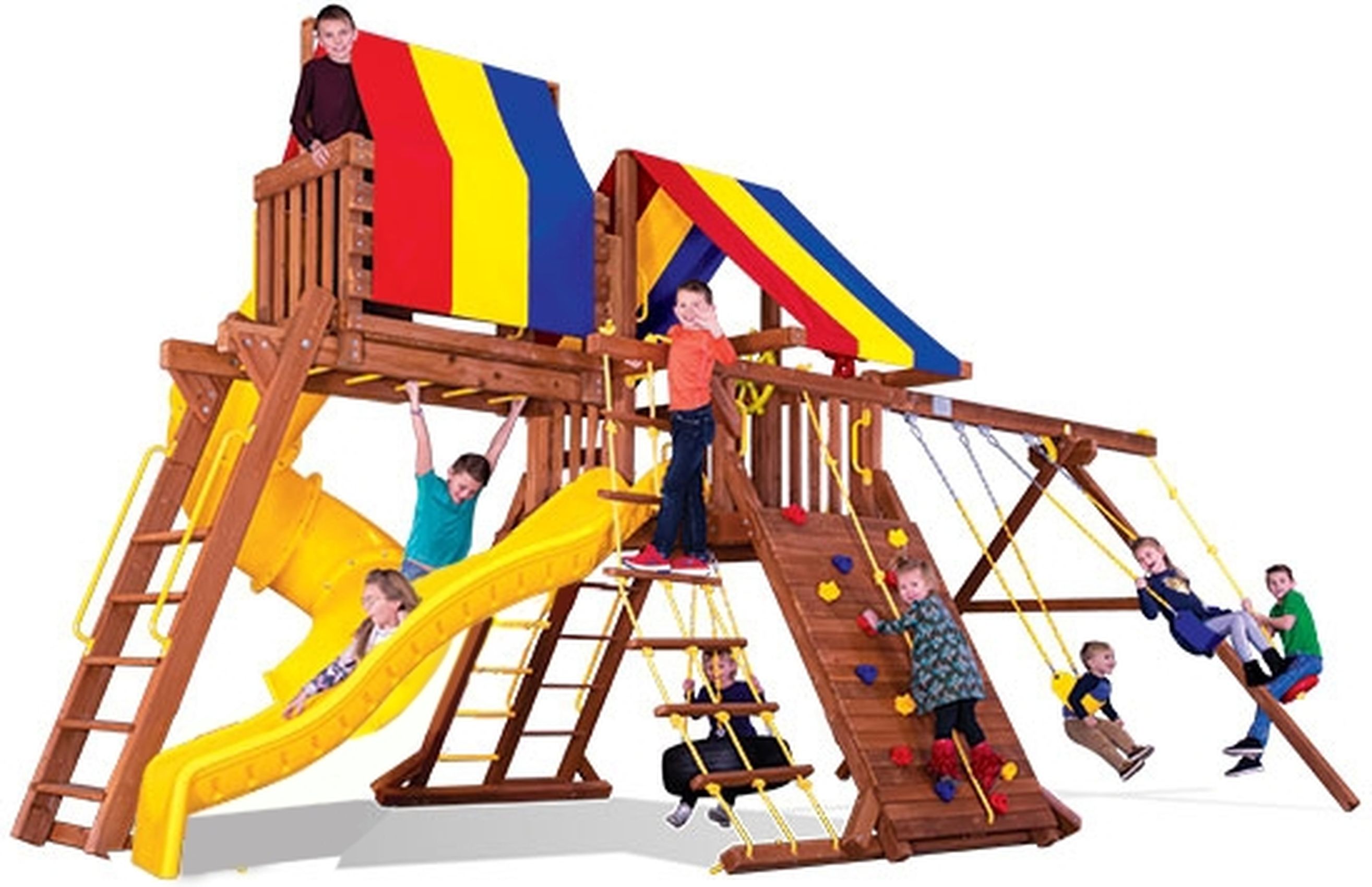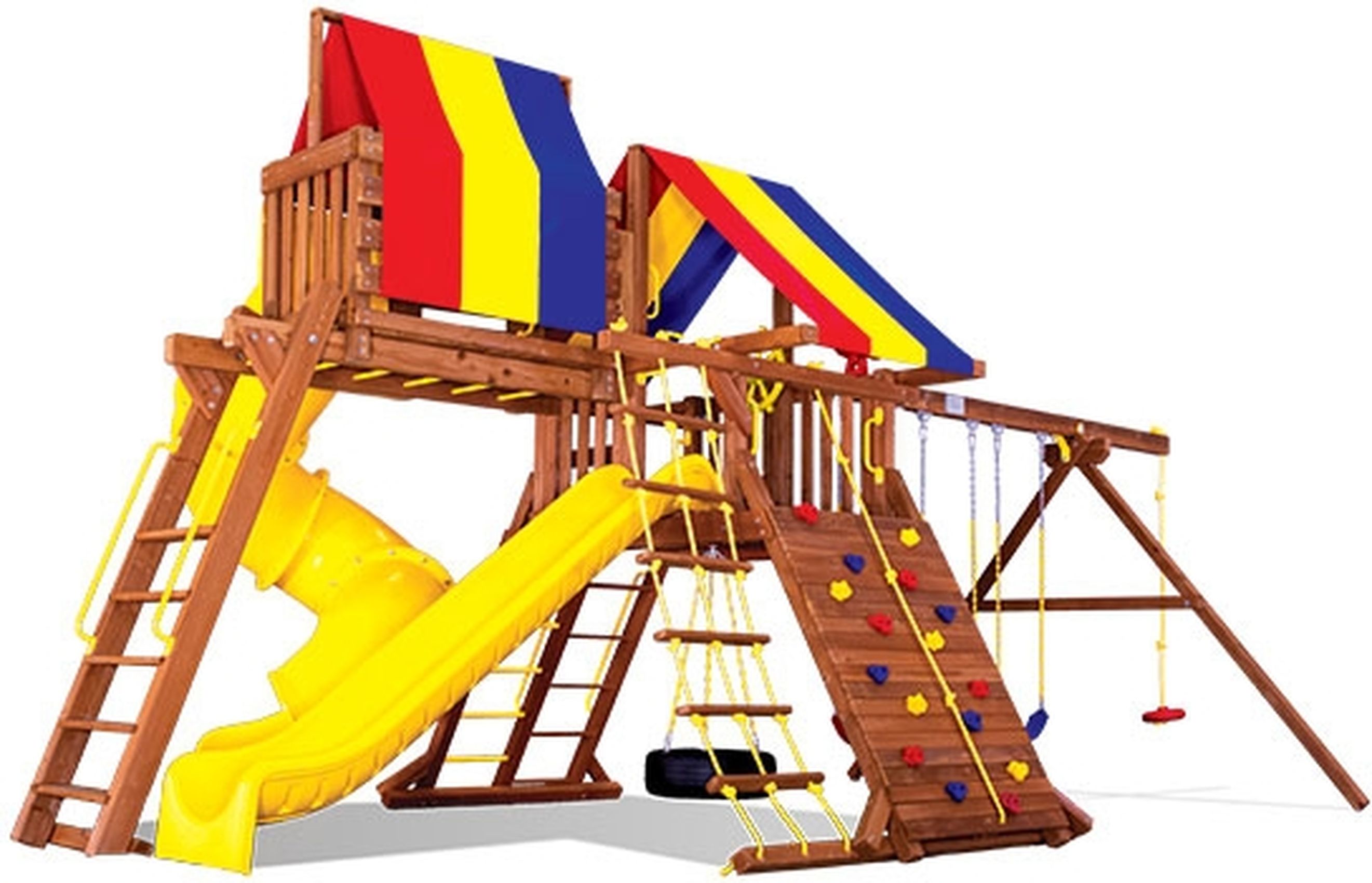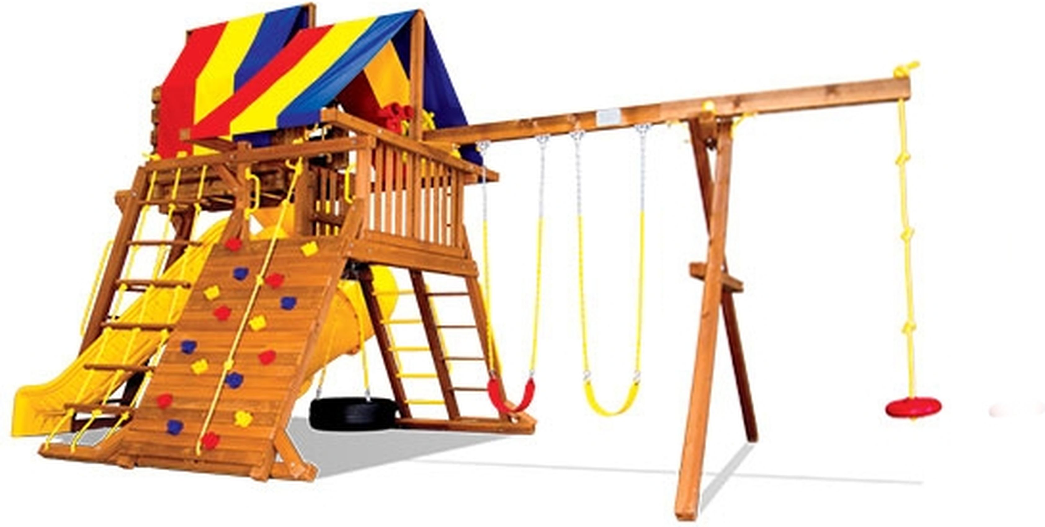 Приятные особенности :Мощная детская игровая площадка с двумя горками - прямой и горкой-трубой, качелями и домиками позволит разыграться не по-детски! Несколько секций позволят играть двум компаниям разновозрастных детей. Площадка прекрасно встанет на небольшом участке и при этом будет функционировать как полноценная отдельная детская зона. Этот игровой комплекс также подойдет для общественных мест, парков и ресторанов с летней верандой.