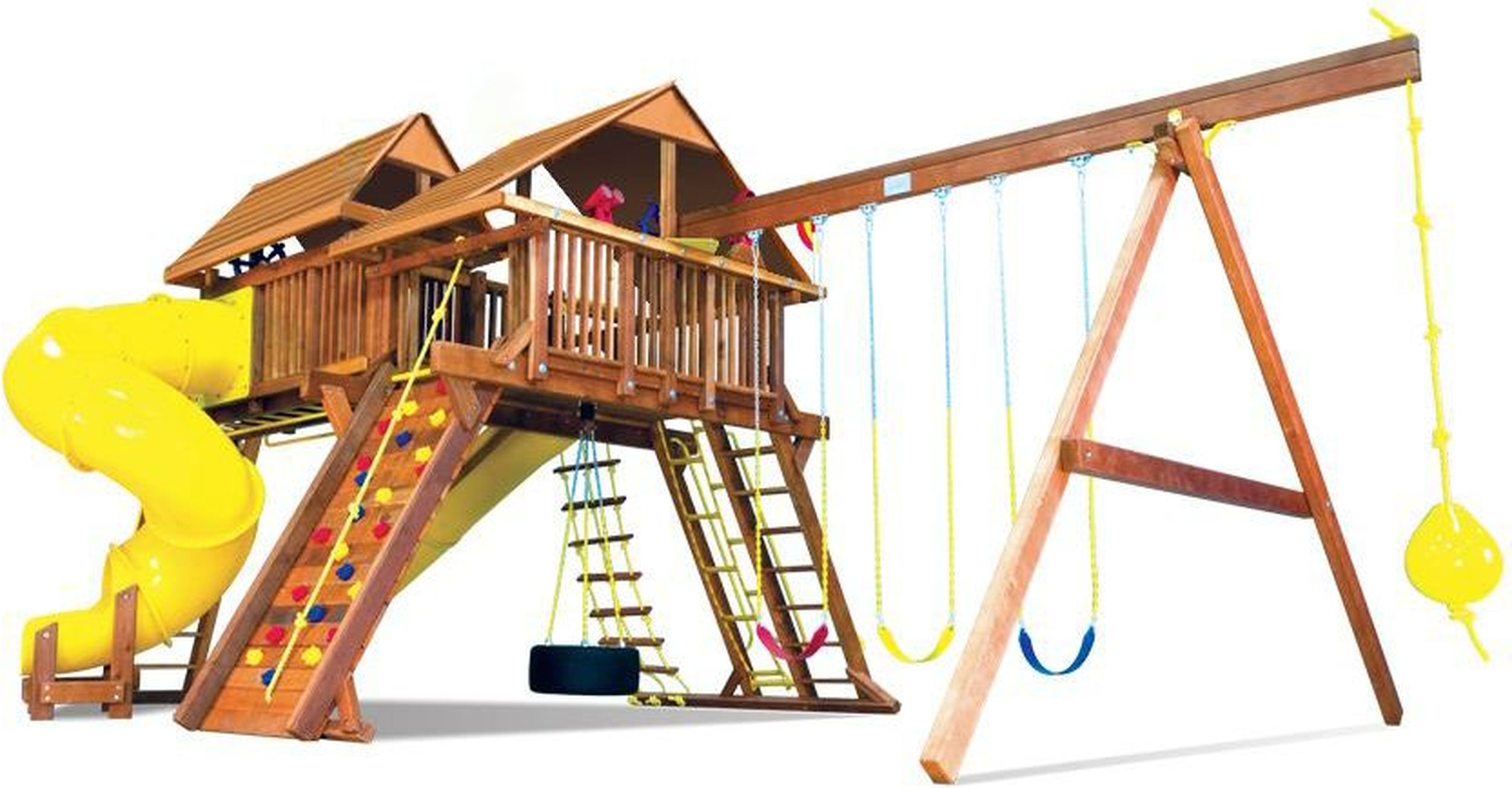 Приятные особенности :Незыблемое качество Rainbow приобретает особенный смысл в игровом комплексе King Kong Castle V WR; Это действительно Кинг-Конг среди других деревянных площадок! Массивные несущие опоры, высокие качели, высокая платформа для лазания и наблюдательная вышка, пластиковые горки подходят и взрослым и детям! Такая игровая площадка будет гордостью любого загородного дома и точкой притяжения всех гостей, как маленьких, так и взрослых.