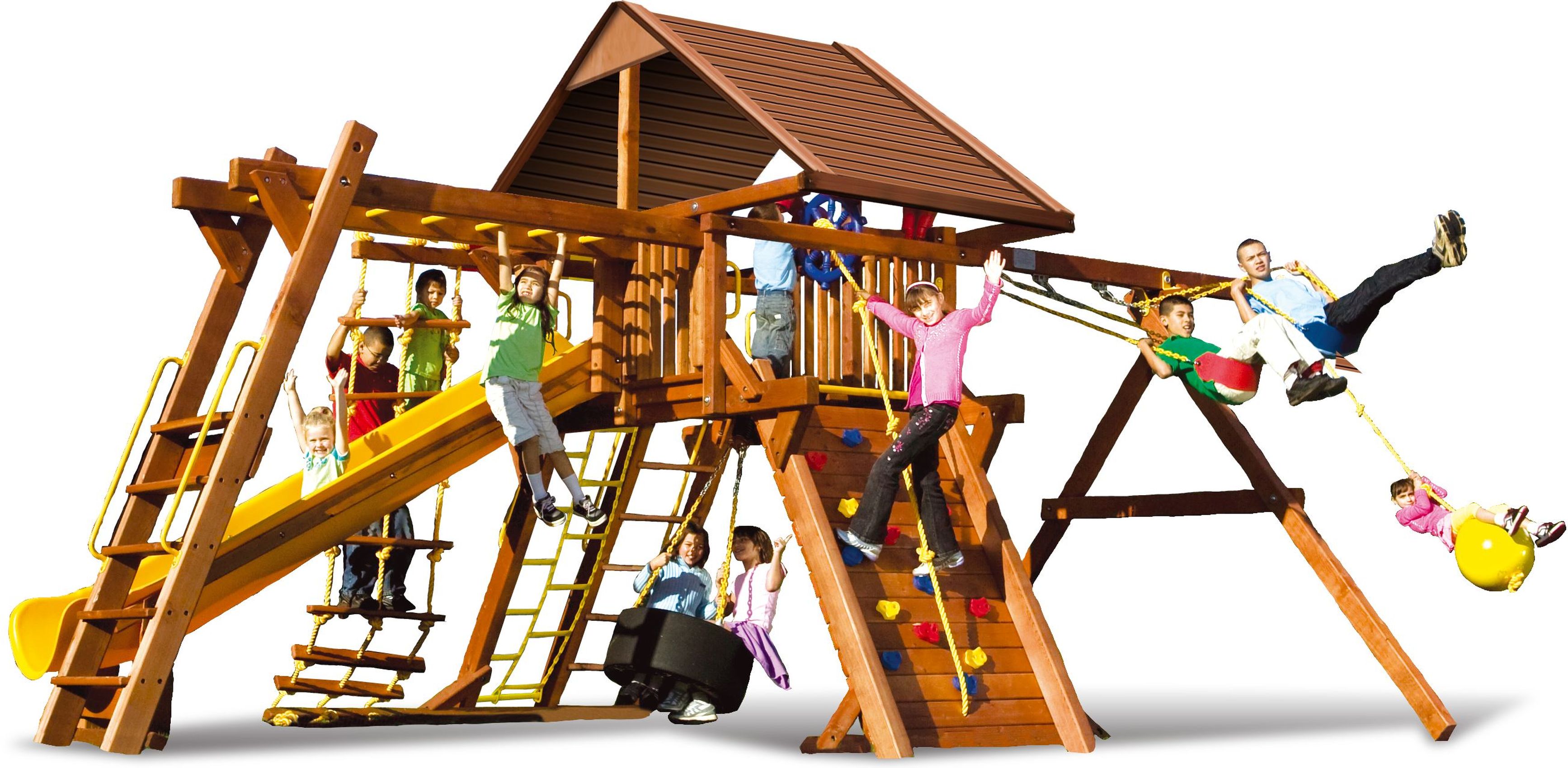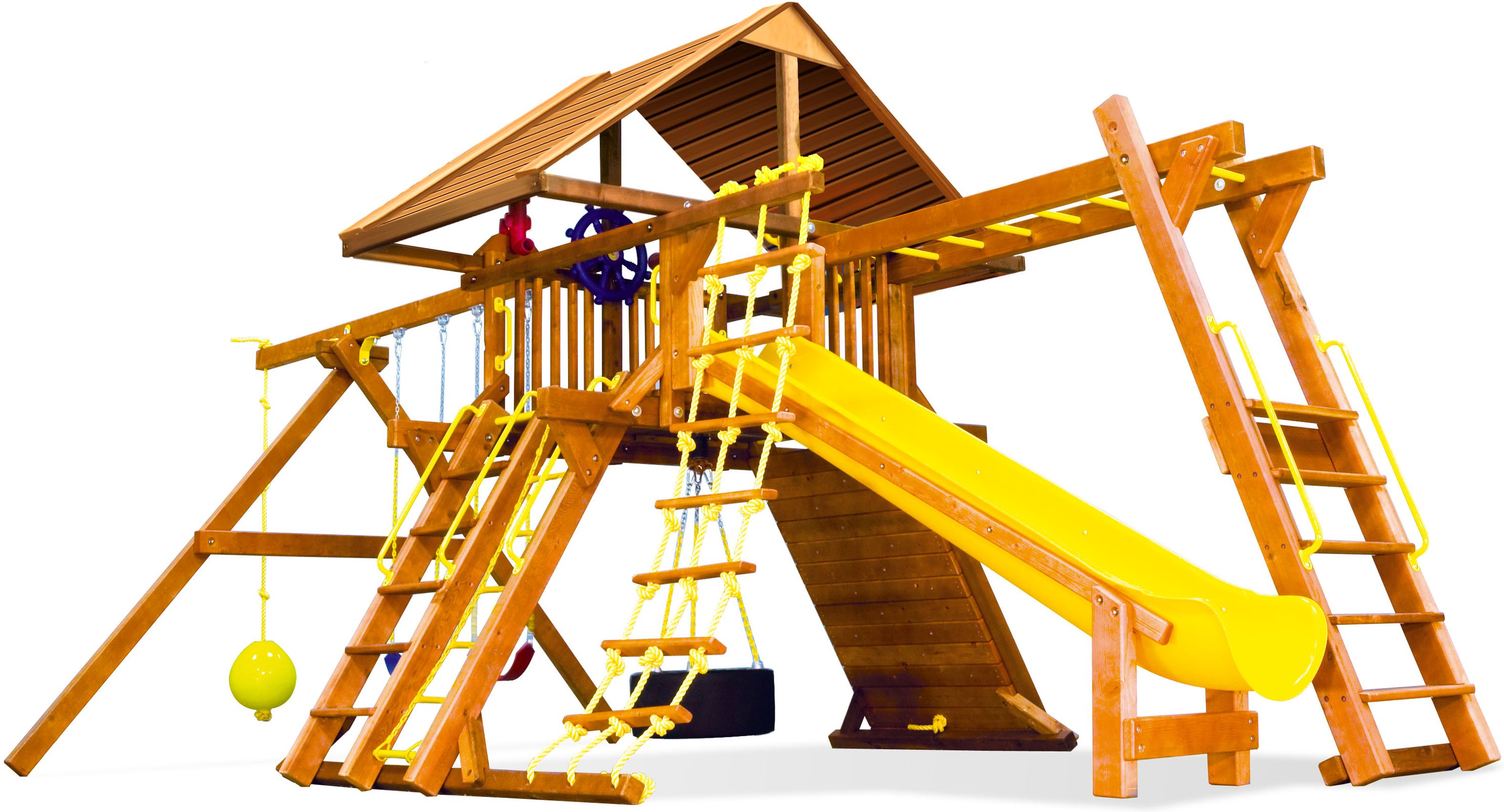Приятные особенности :Веревочные лестницы, скалодром и рукоход, высокая горка и три вида качелей, а также почти настоящая капитанская рубка со штурвалом и биноклем! Такая насыщенная комплектация действительно впечатляет. Наверняка увести ребенка с площадки можно будет, только когда он нарезвится всласть! Кроме того, любой игровой комплекс Rainbow легко установить на участке: игровые площадки не требуют бетонирования; их легко разместить как на открытой территории, так и установить в небольшом дачном лесочке среди деревьев!