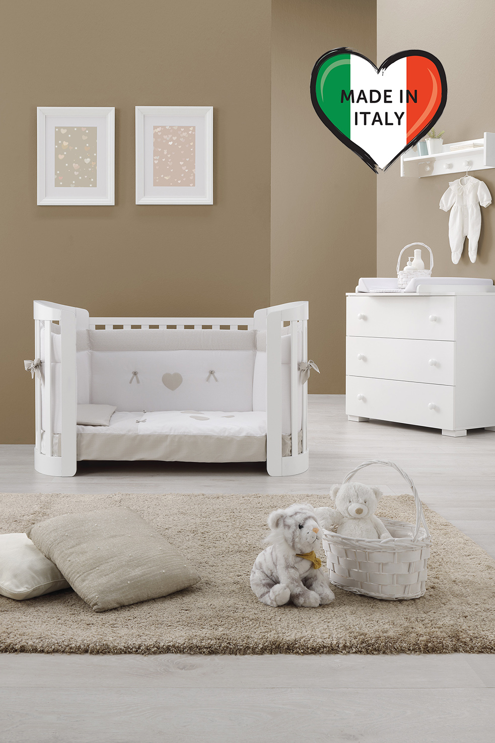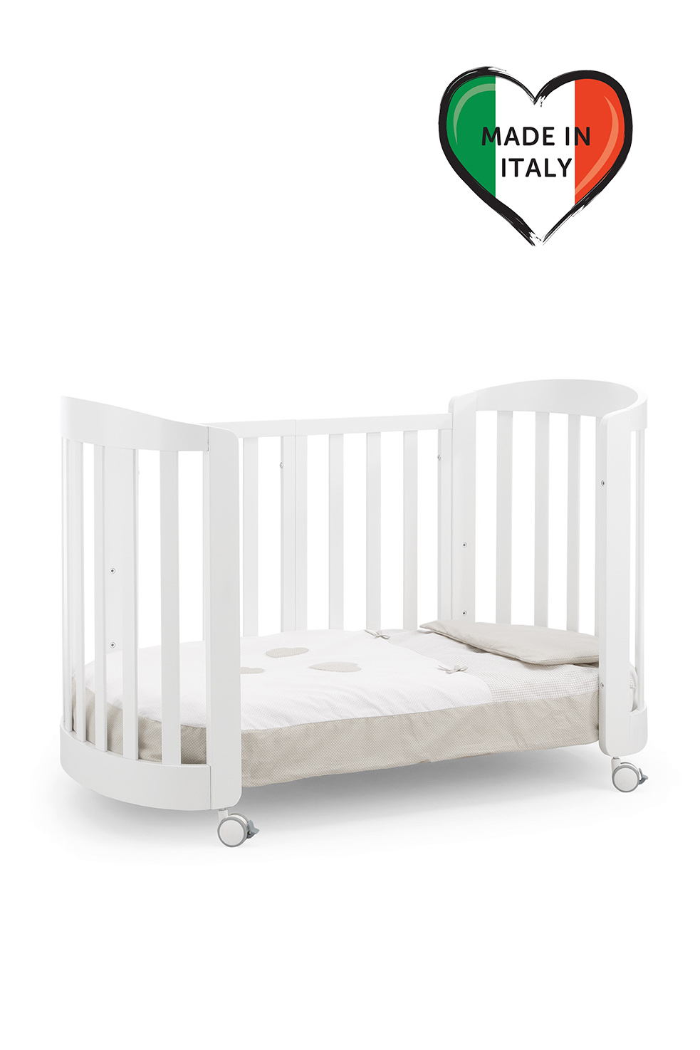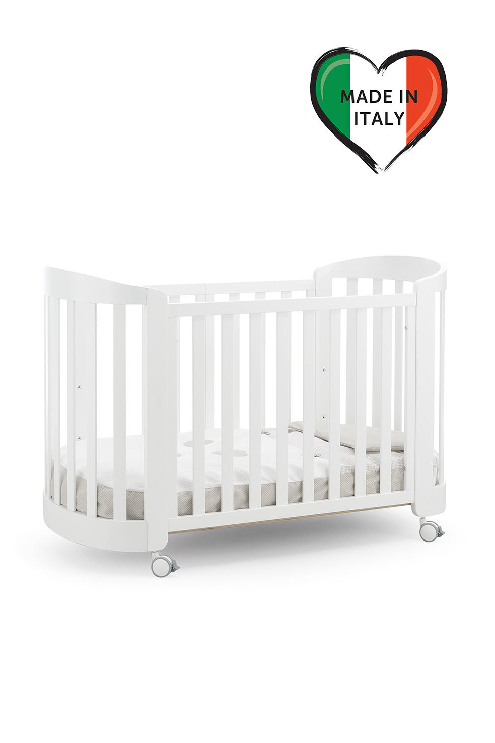 Erbesi Sweet готова к использованию в качестве колыбели сразу после распаковки с внутренними размерами 85 х 61 см. Когда ребёнок подрастет, детская колыбелька легко трансформируется в детскую кроватку внутренними размерами 128х61 см. Наконец, в третьем варианте кроватка для малышей превращается в кроватку Монтессори, предоставляя вашему малышу больше независимости.