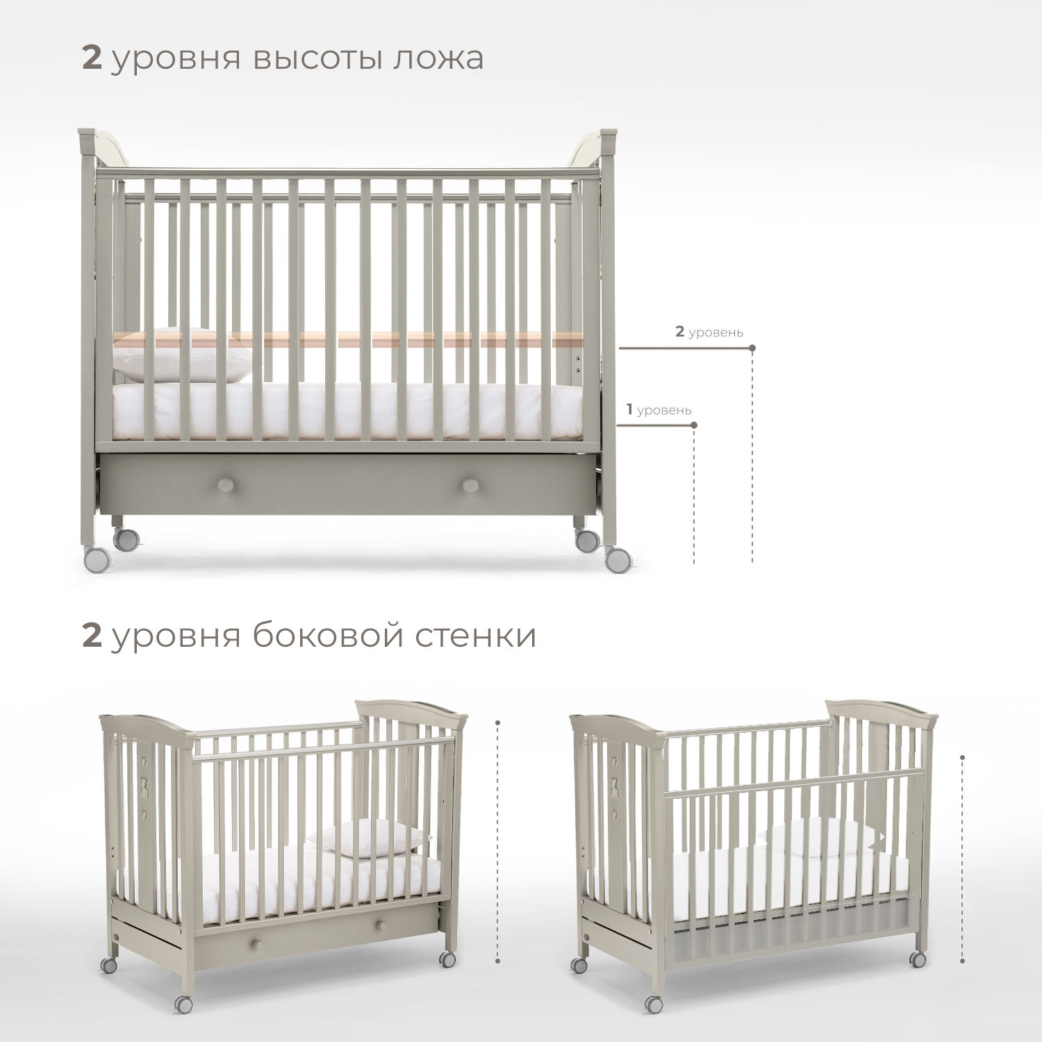 Приятные особенности :Детская кровать Nuovita Fasto – это изысканный дизайн, практичность и передовые технологии, которые помогут наилучшим образом организовать спальное место для малыша и подарить ему спокойный сон и полноценный отдых. Кроватка изготовлена на современном оборудовании в соответствии с европейскими стандартами качества и под строгим контролем специалистов из Италии. Ее исполнение безупречно, а материалы натуральны и безопасны: корпус кроватки выполнен из знаменитого своей прочностью бука и покрыт экологически чистыми красками и лаками. Колеса имеют механизм вращения (на 360°), оснащены стопорами. Это свойство следует применять во время бодрствования ребенка. Прорезиненная поверхность колес делает скольжение кроватки бесшумным, не оставляя следов на паркете и ковровом покрытии. Опускающаяся передняя стенка облегчает контакт матери с ребенком и имеет надежный механизм фиксации.