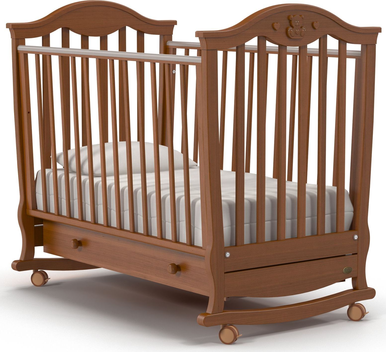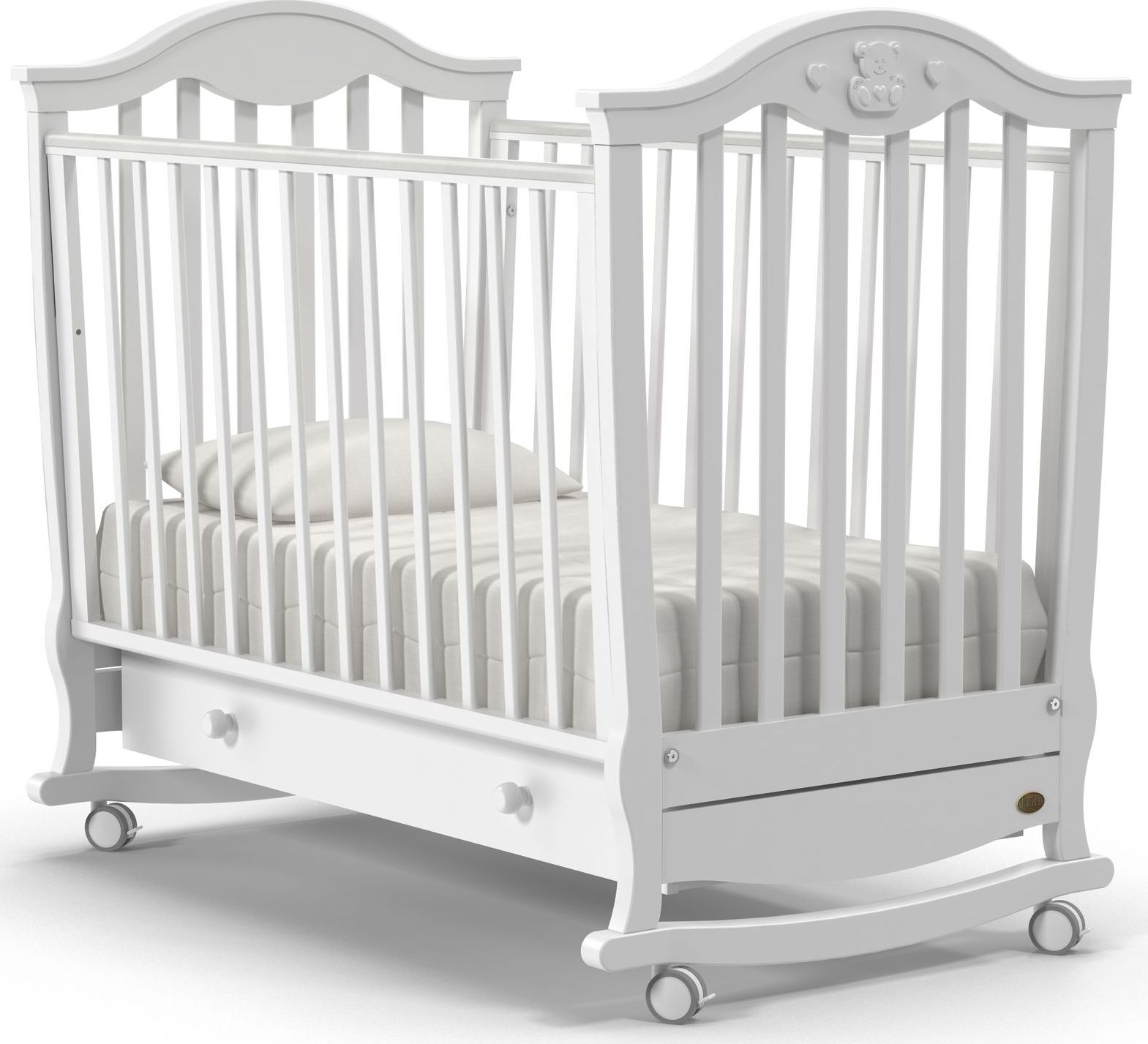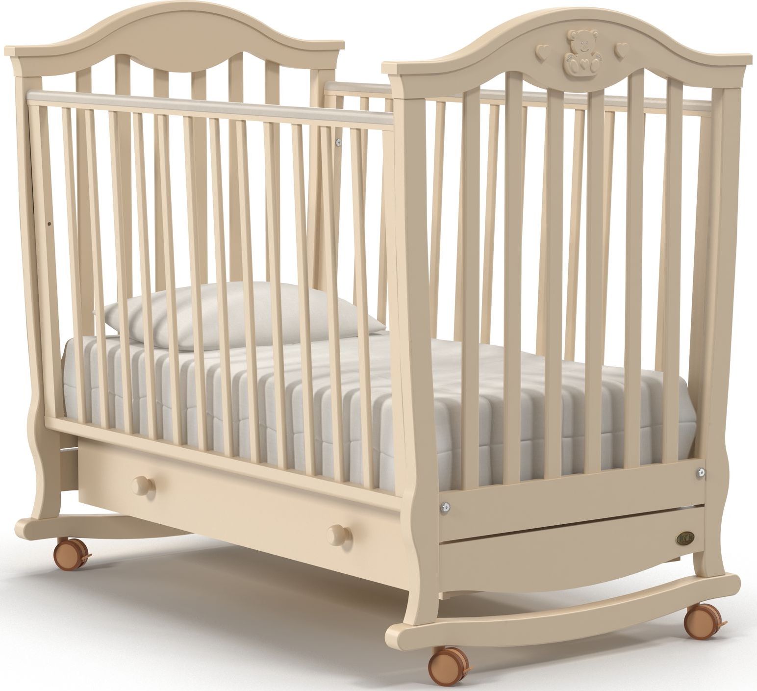 Приятные особенности :Кроватка Nuovita Sorriso dondolo предназначена для детей с рождения. Изготовлена из высококачественны, экологически-чистых материалов, совершенно безопасных для детей. Силиконовые накладки специально предусмотрены для того, чтобы ребенок не повредил свои зубки, а отсутствие острых углов предохранит его от ударов. Два уровня высоты позволяют регулировать ортопедическое ложе по мере взросления малыша, а переднюю стенку можно будет убрать, когда она не понадобится. В удобном вместительном ящике можно разложить все самое необходимое для малыша.