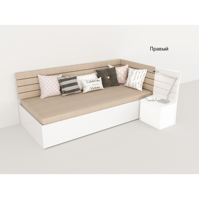 Приятные особенности:Коллекция детской мебели "CRISP" выполнена в современном стиле в белом цвете (глянец) из ЛДСП/МДФ производителя LAMARTY / EGGER, класс Е 0.5. Кромка немецкая DOLLKEN закрыта со всех сторон каждой детали. Мебель может быть изготовлена по индивидуальному заказу - в любом цвете (цена рассчитывается индивидуально). Двери и ящики открываются при помощи нажатия. Петли дверей с доводчиками BOYARD с вертикальной установкой. Направляющие ящиков с доводчиками скрытого монтажа полного выдвижения фирмы HETTIH. Петли Boyard (НЕО) с вертикальной регулировкой.Мебель детская "CRISP" - мягкие элементы могут быть выполнены в любом цвете (фото по запросу).Кровать угловая с тумбочкой и спинкой к ней имеет размер спального места 90х190 , матрас приобретается дополнительно (рекомендуемая высота матраса 14-16 см). Основание ортопедическое (ламели). Нагрузка на кровать 100 кг. Кровать с мягкой спинкой, ткань вельвет.