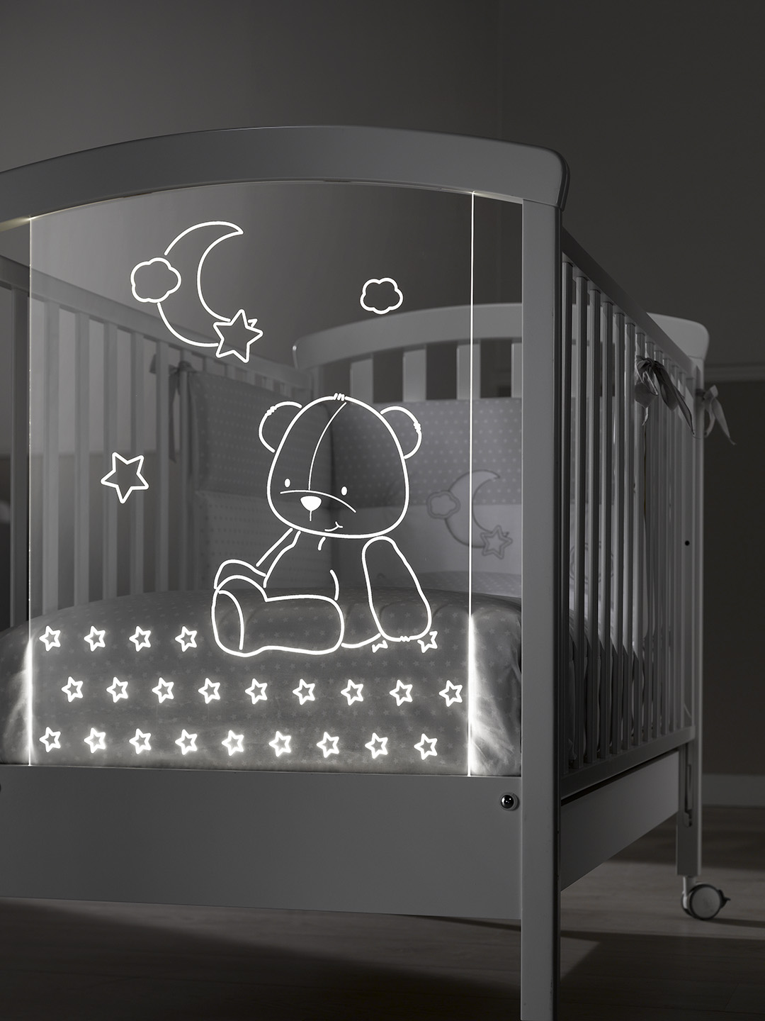 Приятные особенности :Обе боковые стенки регулируются благодаря системе secur-baby, которая позволяет двигаться только двумя различными движениями, выполняемыми взрослым. Применяя европейские правила безопасности EN 716-1: 2008 + A1: 2013 Панель Serigraphed из органического стекла.