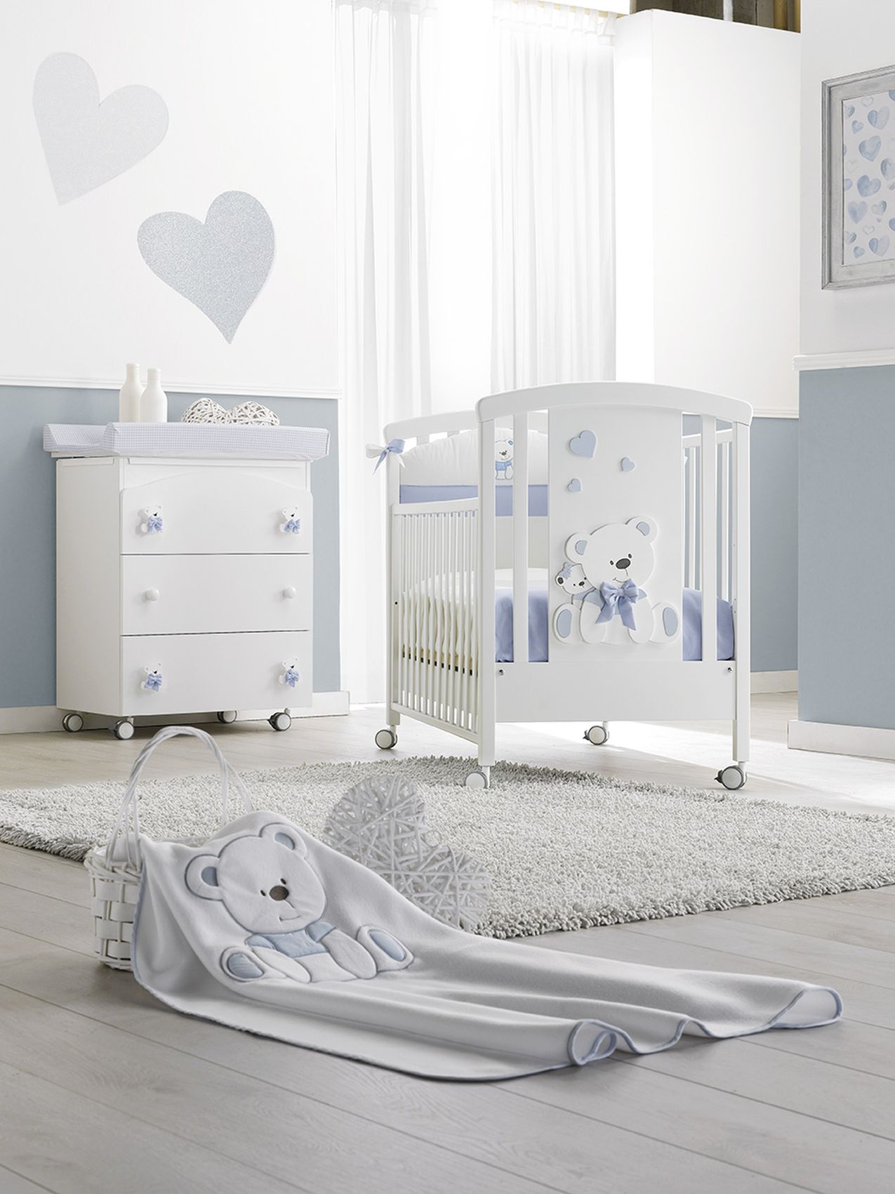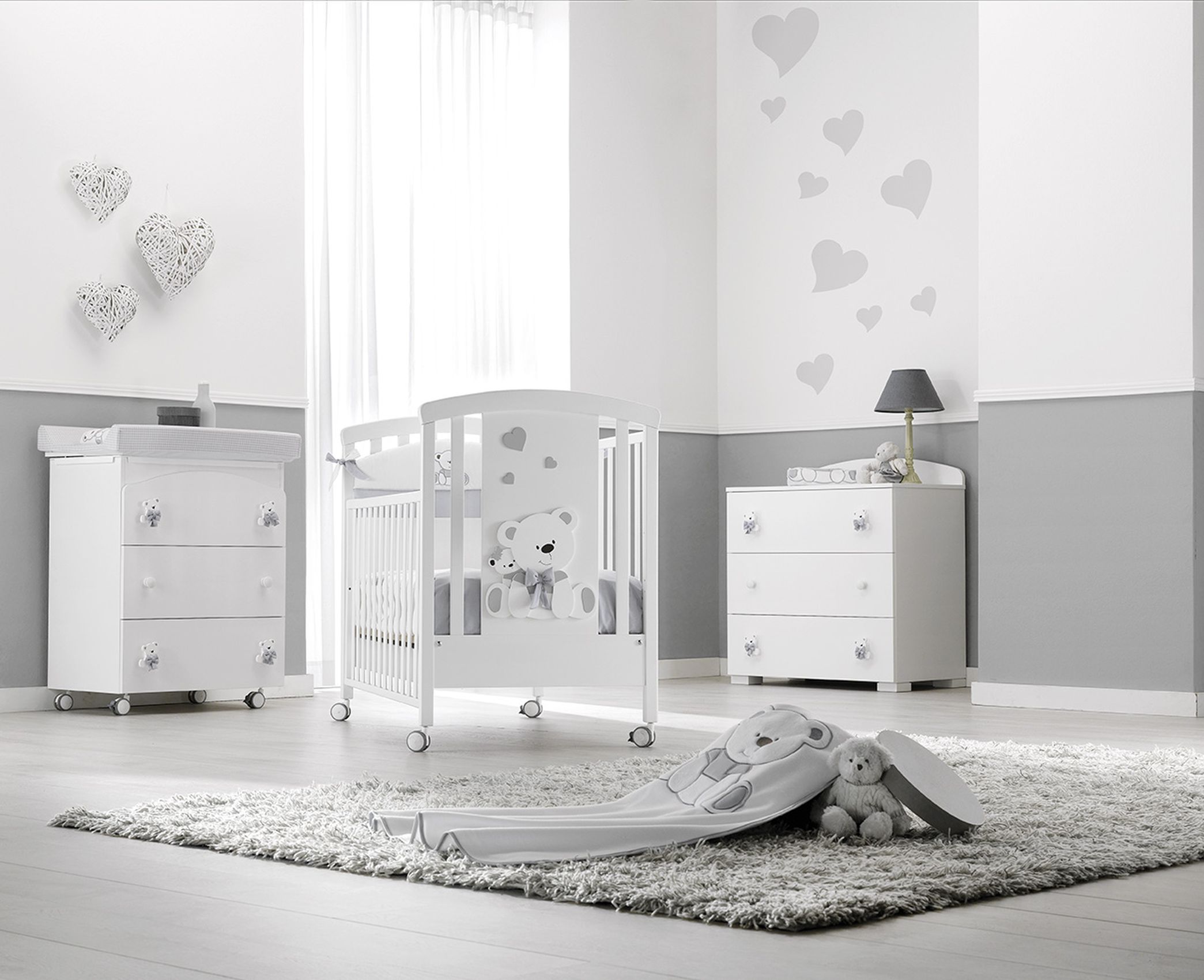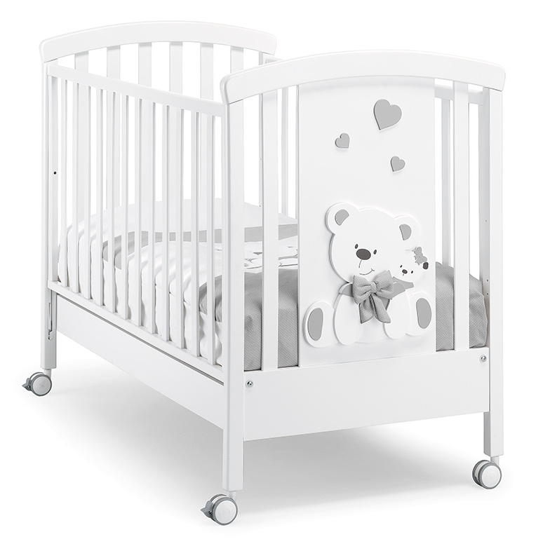 Приятные особенности:изысканная кроватка для новорожденного в классическом стиле. Лаконичный дизайн в белом исполнении с четкими прямыми линиями дополнен большим объемным декором в виде улыбающегося мишки с текстильным бантом на шее. Конструкция кроватки изготовлена из экологически чистой древесины бука, а украшения производят из плиты МДФ путем лазерной фигурной резки. Все красивые накладки расписаны вручную, различают 4 основных цвета отделки декоративных элементов: серый, голубой, розовый, бежевый. Ортопедическое реечное дно, фиксируемое в 2-х положениях по высоте, правильно распределяет нагрузку на матрас и позвоночник. Такое основание способствует лучшей циркуляции воздуха. Боковины опускаются для легкого и быстрого доступа к малышу. Полностью демонтируйте одну из стенок для трансформации в уютный диванчик для подросшего самостоятельного ребенка. Четыре колесика, закрепленные на ножках кровати, предназначены для перемещения ее по дому. Прорезиненное покрытие не царапает и не портит пол. Вместительный ящик для белья и детских принадлежностей разделен на 2 секции.