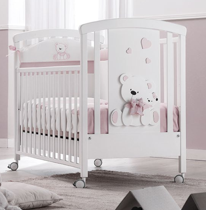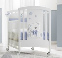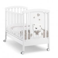 Приятные особенности: Детская кроватка Erbesi Tato - изысканная кроватка для новорожденного в классическом стиле. Лаконичный дизайн в белом исполнении с четкими прямыми линиями дополнен большим объемным декором в виде улыбающегося мишки с текстильным бантом на шее. Конструкция кроватки изготовлена из экологически чистой древесины бука, а украшения производят из плиты МДФ путем лазерной фигурной резки. Все красивые накладки расписаны вручную, различают 4 основных цвета отделки декоративных элементов: серый, голубой, розовый, бежевый. Ортопедическое реечное дно, фиксируемое в 2-х положениях по высоте, правильно распределяет нагрузку на матрас и позвоночник. Такое основание способствует лучшей циркуляции воздуха. Боковины опускаются для легкого и быстрого доступа к малышу. Полностью демонтируйте одну из стенок для трансформации в уютный диванчик для подросшего самостоятельного ребенка. Четыре колесика, закрепленные на ножках кровати, предназначены для перемещения ее по дому. Прорезиненное покрытие не царапает и не портит пол. Вместительный ящик для белья и детских принадлежностей разделен на 2 секции.