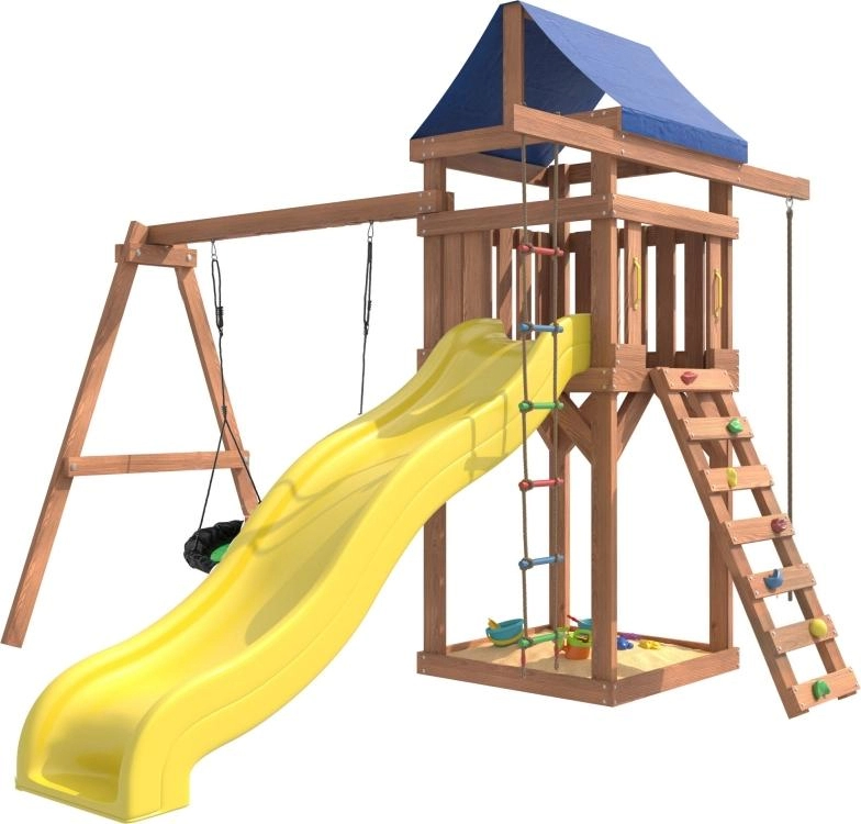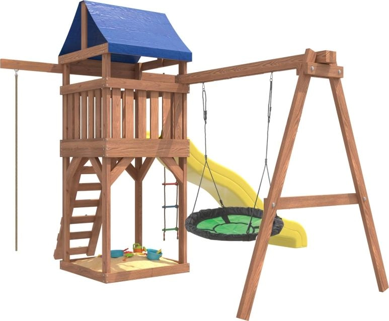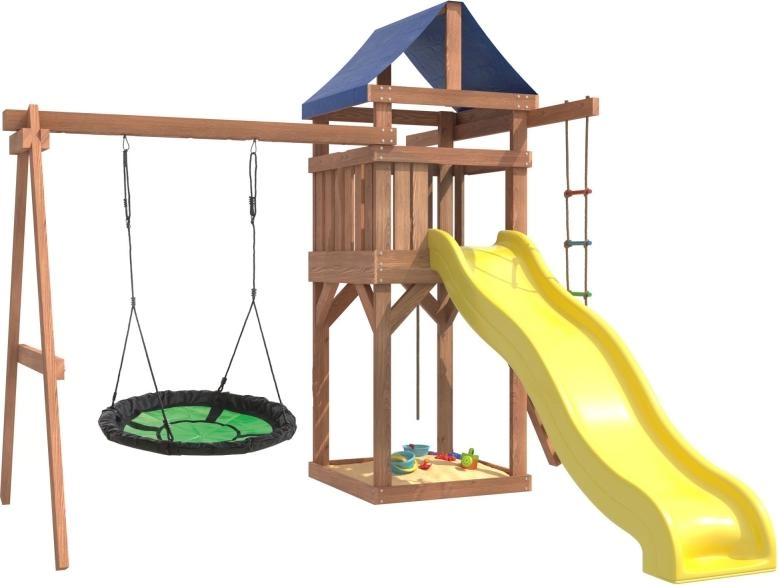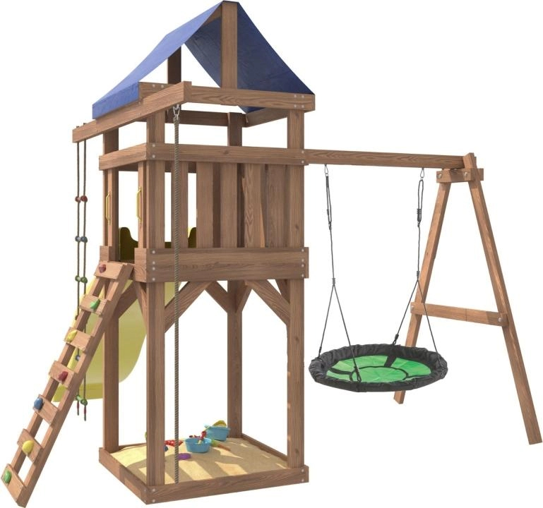 Приятные особенности: Детская площадка IgroWoods - отличное решение для активного отдыха детей на свежем воздухе. Она представляет собой многофункциональный игровой комплекс, который включает в себя горку, качели, песочницу, игровую веранду, веревочную лестницу, скалодром и канат. Все элементы выполнены из качественных и безопасных материалов, что обеспечивает долговечность и надежность конструкции. Детская игровая площадка является многофункциональным спортивным игровым комплексом для детей от 3 до 14 лет.С помощью этой площадки дети смогут развить свою физическую форму, координацию движений и логическое мышление. Кроме того, игры на свежем воздухе способствуют укреплению иммунитета и улучшению общего состояния здоровья детей.Садовые качели подвесные для улицы детские и взрослые, подойдут абсолютно для всех, так как качельная балка и полиуретановые канаты выдерживают общий вес до 250 кг. На уличных дачных качелях вы можете расслабиться и отдохнуть у себя в саду и провести время со своим ребенком.Площадка изготавливается из лесоматериалов лиственных и хвойных пород. Материал имеет естественную древесную текстуру, обработан специальными составами для большего срока использования и предохранения от разрушения древесины. Все элементы проходят предварительную шлифовку, а края изделия закруглены. Небольшое количество металлических элементов значительно исключает возможность получения ребенком травм.