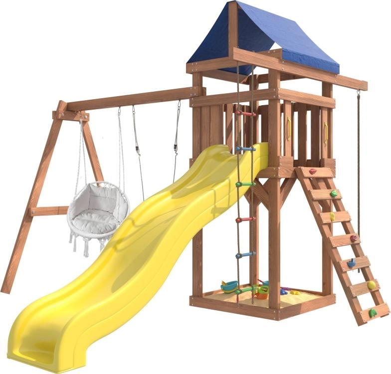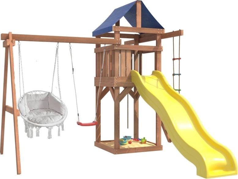 Детская площадка IgroWoods с качелями лодочка и подвесным креслом с подушкой
