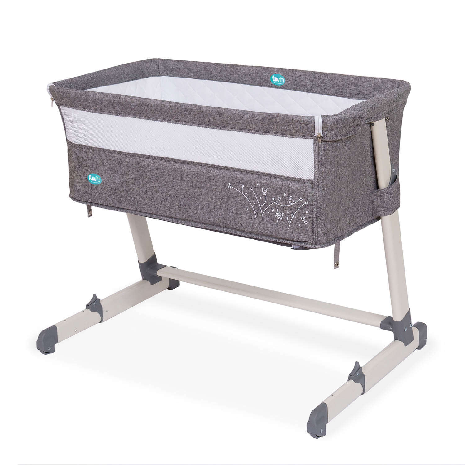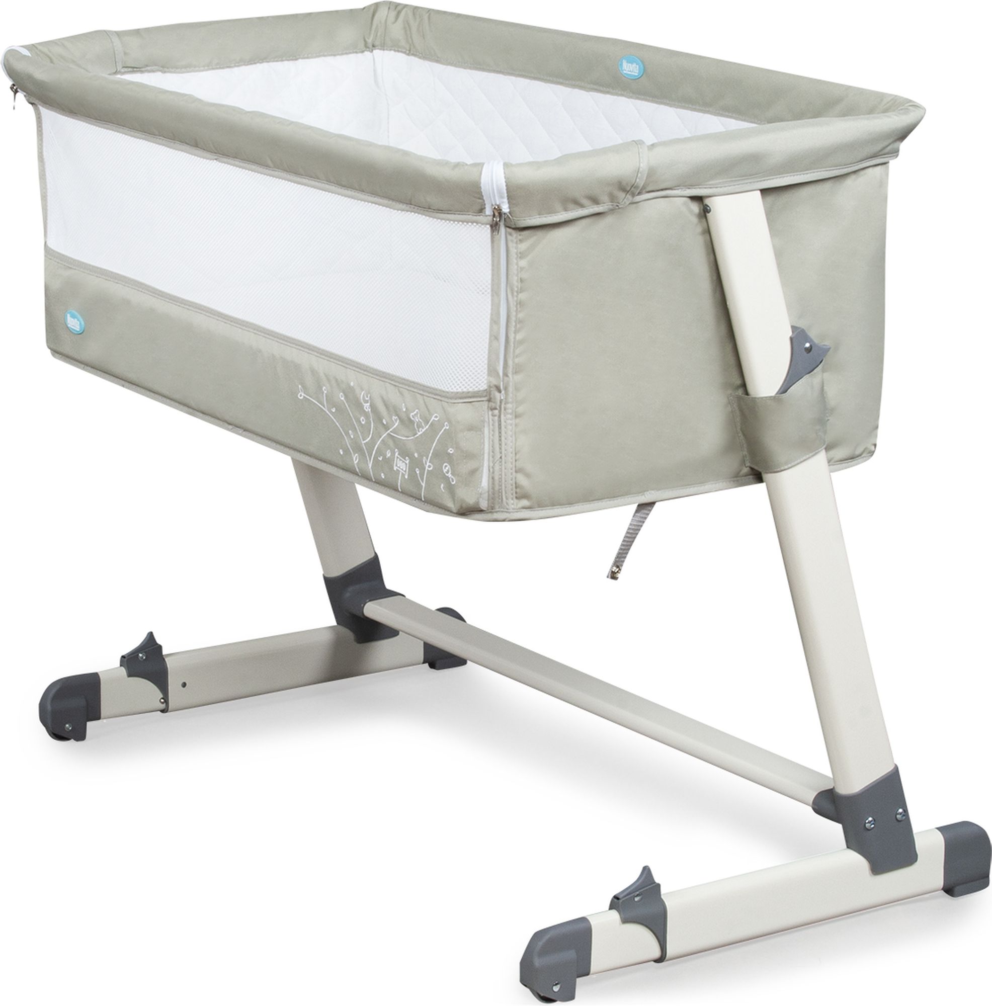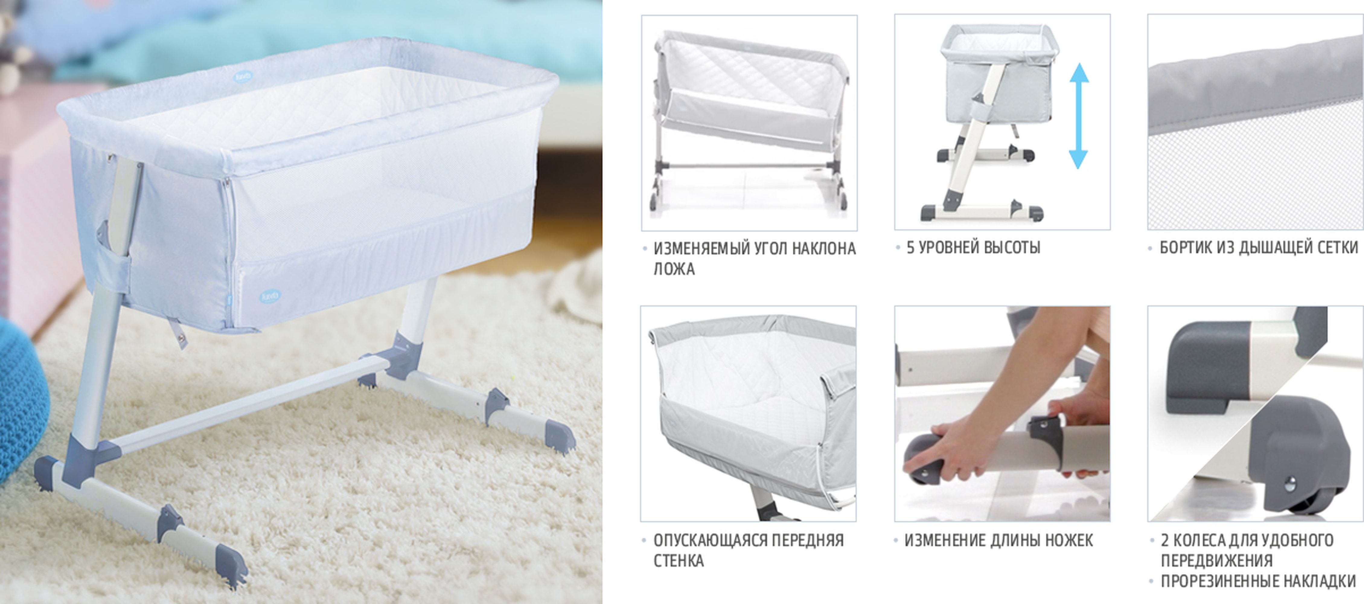 Приятные особенности:Детская приставная кроватка Nuovita Accanto Для выравнивания кроватей под один уровень у приставной кроватки предусмотрены пять различных положений по высоте. При этом передний бортик выполнен из «дышащей» сетчатой ткани, обеспечивающий циркуляцию воздуха и возможность наблюдения за ребенком.Дополнительно предусмотрено изменение наклона самой кроватки, что позволяет еще лучше циркулировать воздуху, а после кормления предотвращает срыгивание малыша. Днем такую кроватку можно использовать, как отдельно стоящую кроватку на колесиках. Для удобства хранения или транспортировки ее можно компактно складывать.