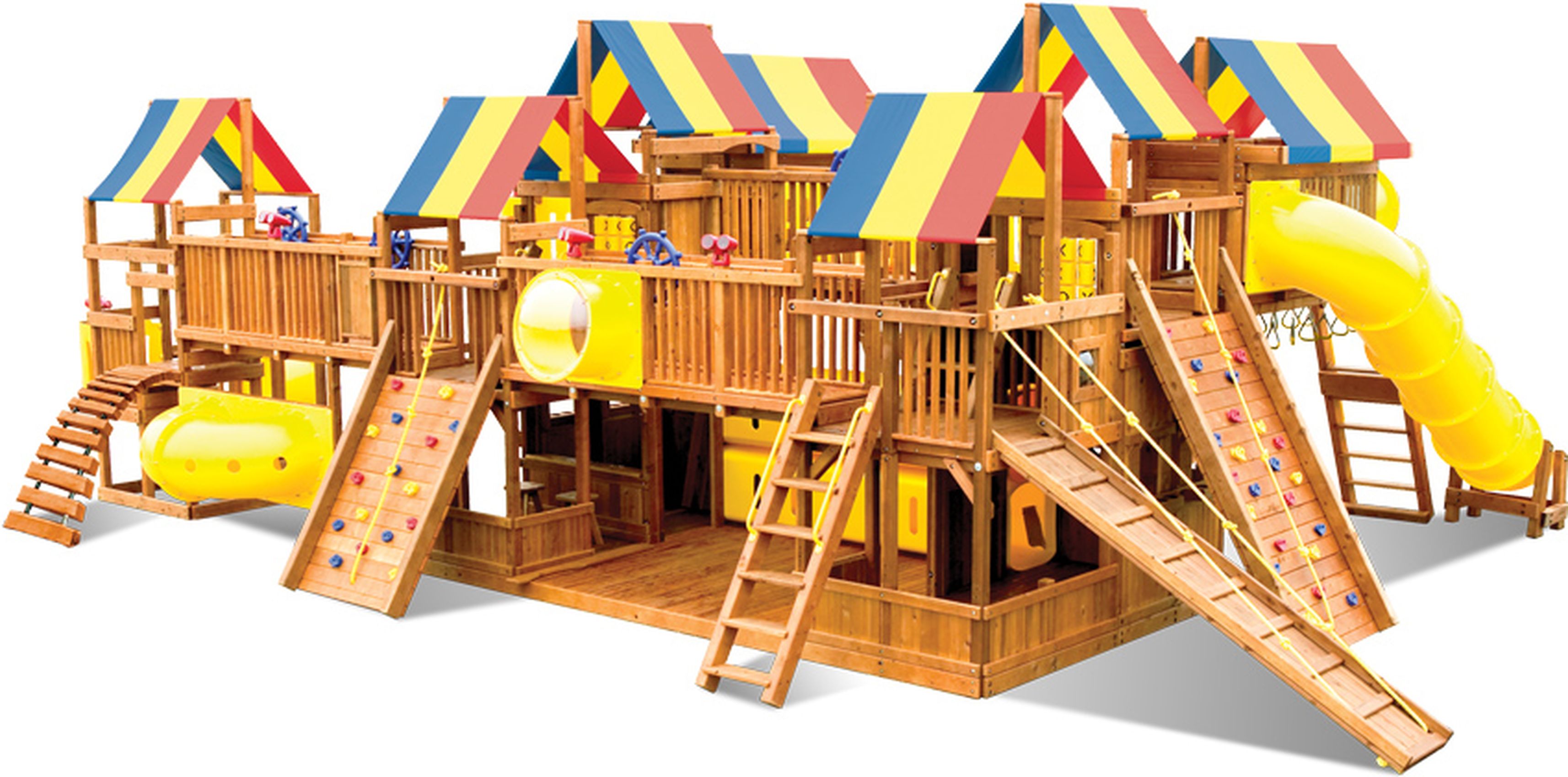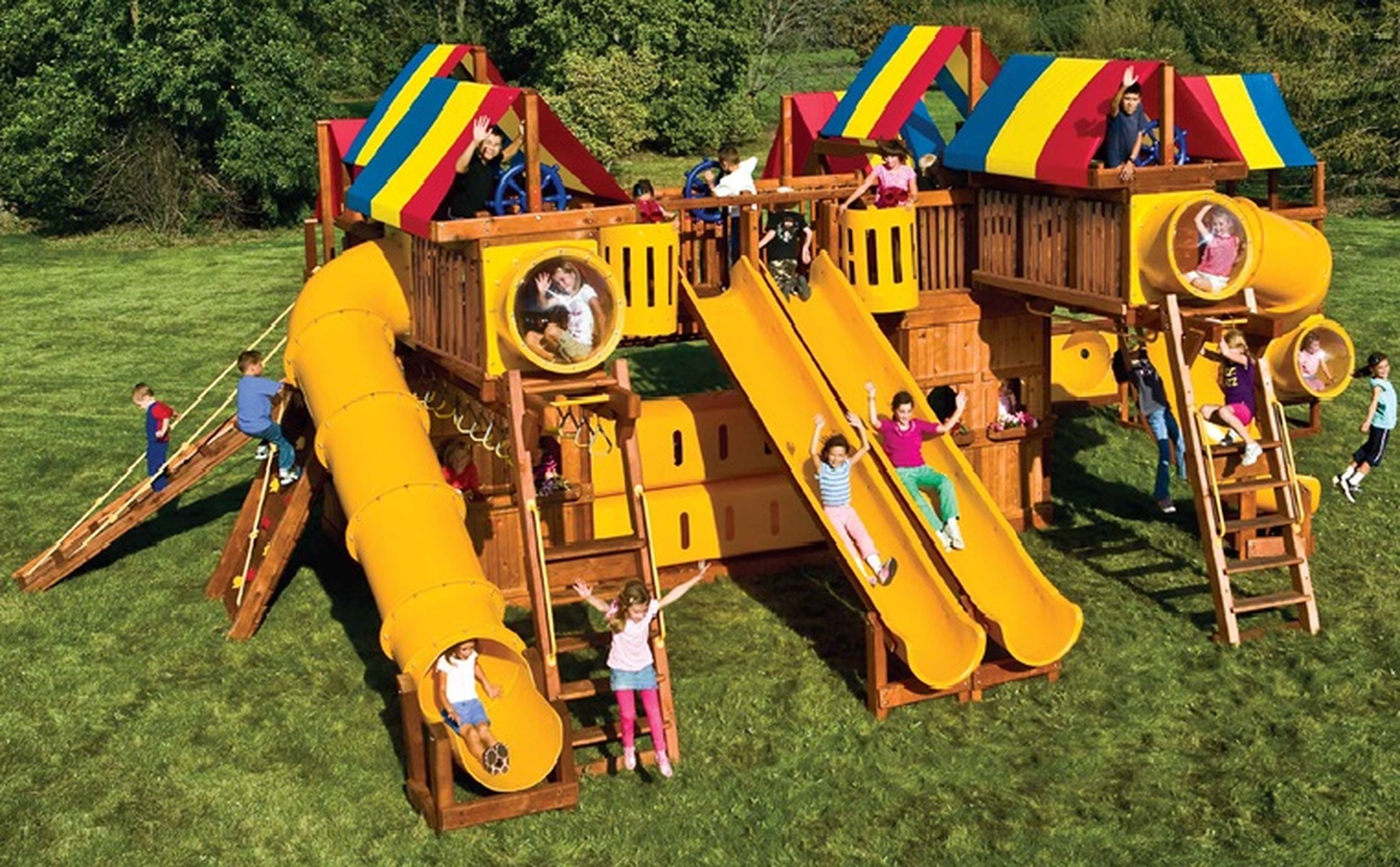 Приятные особенности :Игровой городок вроде этого – действительно что-то особенное! Достаточно большое пространство комплекса оборудовано множеством башенок, лестниц, подъёмных мостов, скалодромов, горок, комнаток, тоннелей и переходов. Получается целый сказочный мир, где можно играть в принцесс, пиратов, средневековых рыцарей или даже космических путешественников!