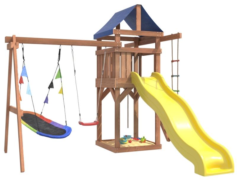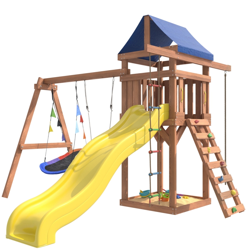 Приятные особенности: Детская площадка IgroWoods - отличное решение для активного отдыха детей на свежем воздухе. Она представляет собой многофункциональный игровой комплекс, который включает в себя горку, качели, песочницу, игровую веранду, веревочную лестницу, скалодром и канат. Все элементы выполнены из качественных и безопасных материалов, что обеспечивает долговечность и надежность конструкции.Детская игровая площадка является многофункциональным спортивным игровым комплексом для детей от 3 до 14 лет.С помощью этой площадки дети смогут развить свою физическую форму, координацию движений и логическое мышление. Кроме того, игры на свежем воздухе способствуют укреплению иммунитета и улучшению общего состояния здоровья детей.Садовые качели подвесные для улицы детские и взрослые, подойдут абсолютно для всех, так как качельная балка и полиуретановые канаты выдерживают общий вес до 250 кг. На уличных дачных качелях вы можете расслабиться и отдохнуть у себя в саду и провести время со своим ребенком.Площадка изготавливается из лесоматериалов лиственных и хвойных пород. Материал имеет естественную древесную текстуру, обработан специальными составами для большего срока использования и предохранения от разрушения древесины. Все элементы проходят предварительную шлифовку, а края изделия закруглены. Небольшое количество металлических элементов значительно исключает возможность получения ребенком травм.