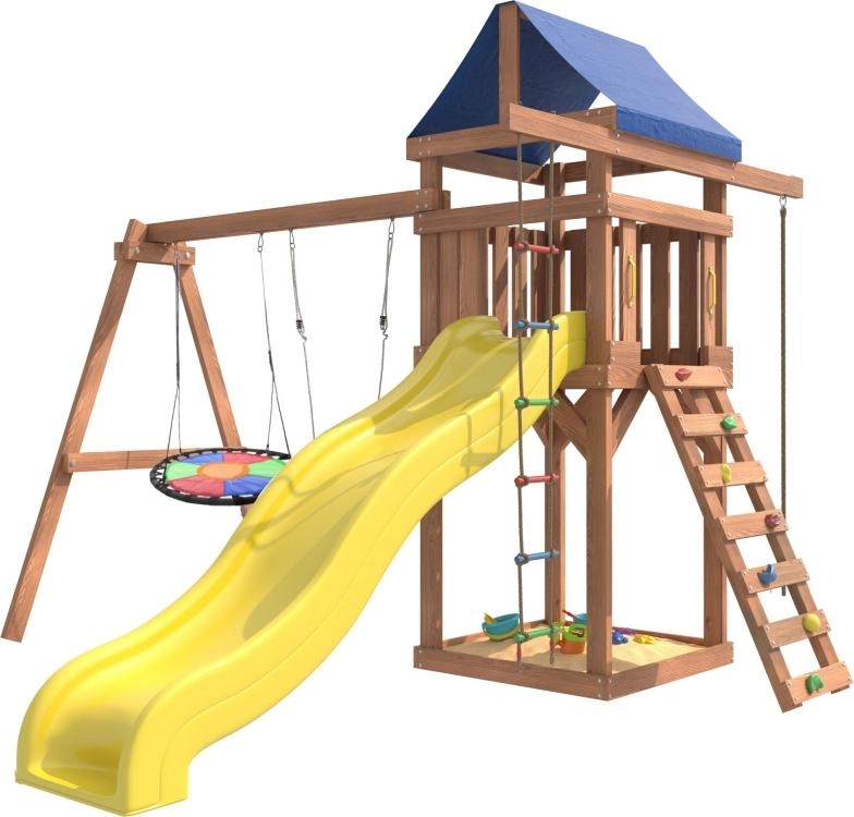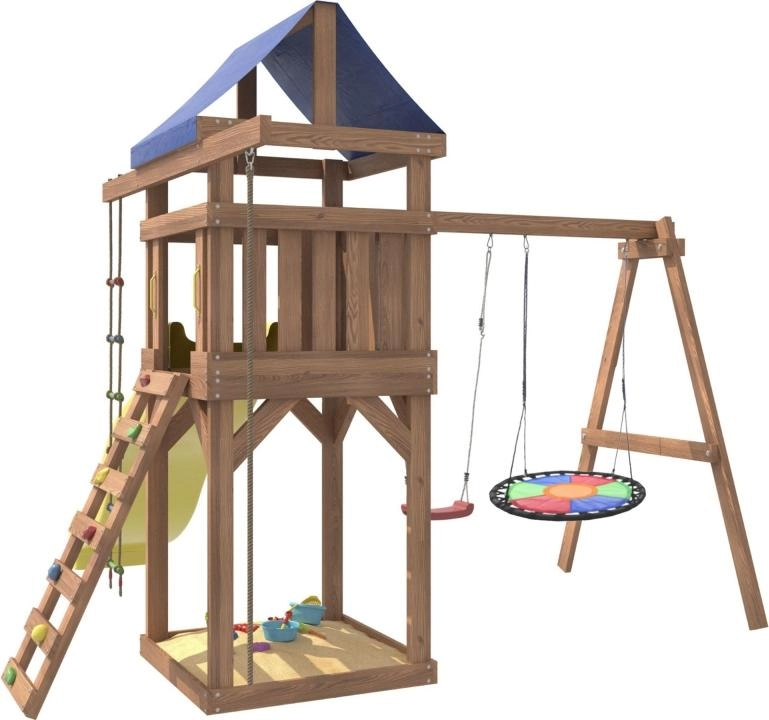 Детская площадка IgroWoods с подвесными качелями лодочка и разноцветной сеткой Свиби