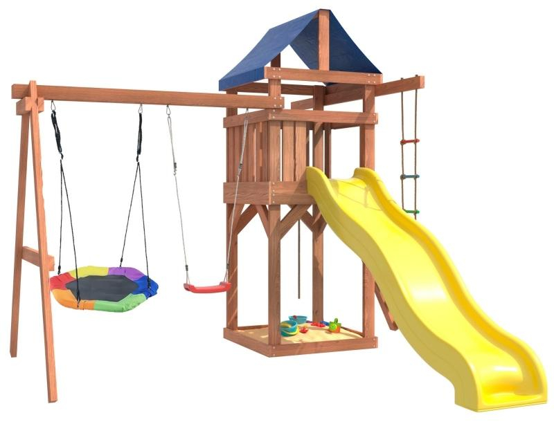 Приятные особенности: Детская площадка IgroWoods - отличное решение для активного отдыха детей на свежем воздухе. Она представляет собой многофункциональный игровой комплекс, который включает в себя горку, качели, песочницу, игровую веранду, веревочную лестницу, скалодром и канат. Все элементы выполнены из качественных и безопасных материалов, что обеспечивает долговечность и надежность конструкции. Детская игровая площадка является многофункциональным спортивным игровым комплексом для детей от 3 до 14 лет. С помощью этой площадки дети смогут развить свою физическую форму, координацию движений и логическое мышление. Кроме того, игры на свежем воздухе способствуют укреплению иммунитета и улучшению общего состояния здоровья детей. Садовые качели подвесные для улицы детские и взрослые, подойдут абсолютно для всех, так как качельная балка и полиуретановые канаты выдерживают общий вес до 250 кг. На уличных дачных качелях вы можете расслабиться и отдохнуть у себя в саду и провести время со своим ребенком.Площадка изготавливается из лесоматериалов лиственных и хвойных пород. Материал имеет естественную древесную текстуру, обработан специальными составами для большего срока использования и предохранения от разрушения древесины. Все элементы проходят предварительную шлифовку, а края изделия закруглены. Небольшое количество металлических элементов значительно исключает возможность получения ребенком травм.