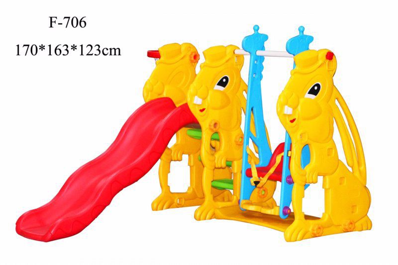 Приятные особенности:Детская горка с качелями Family Зайцы F-706 выполнена в ярких цветах и имеет оригинальный дизайн. Детская горка с волнообразным скатом обеспечит плавный спуск и мягкое приземление вашему ребенку. Широкие ступени и надежные поручни помогут ему подниматься на горку самостоятельно. Боковые стенки конструкции имеют рельефную структуру, что обеспечивает дополнительную безопасность, под горкой есть небольшое пространство для игр. Детские качели с удобным пластиковым сиденьем с высокой спинкой и съемной передней защитной перекладиной с перегородкой для ножек, которая защищает ребенка от падения во время раскачивания, благодаря чему на них может качаться совсем маленький ребенок. Перегородка снимается, когда малыш подрос и уже может качаться самостоятельно. Так же в детском комплексе имеется баскетбольное кольцо.