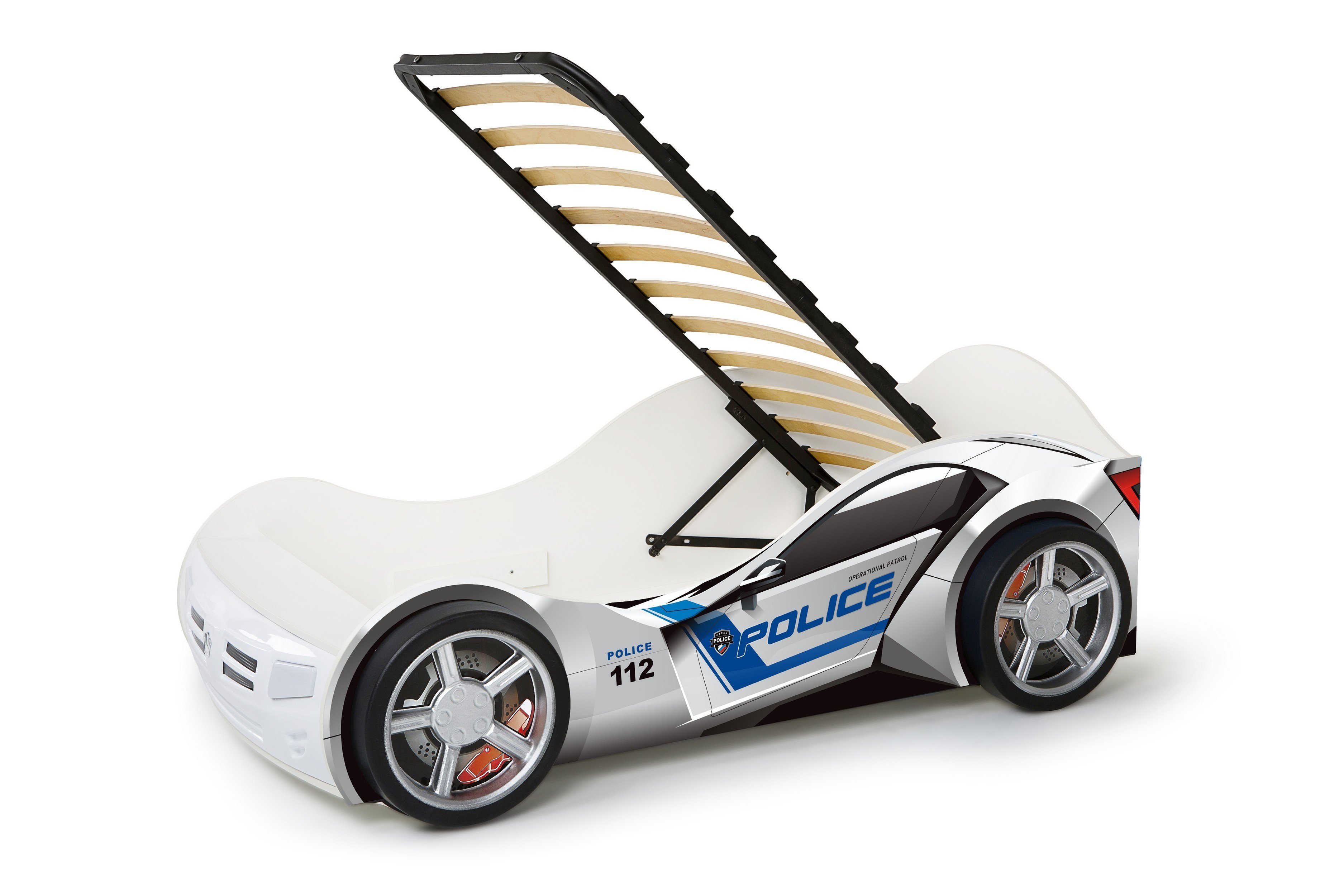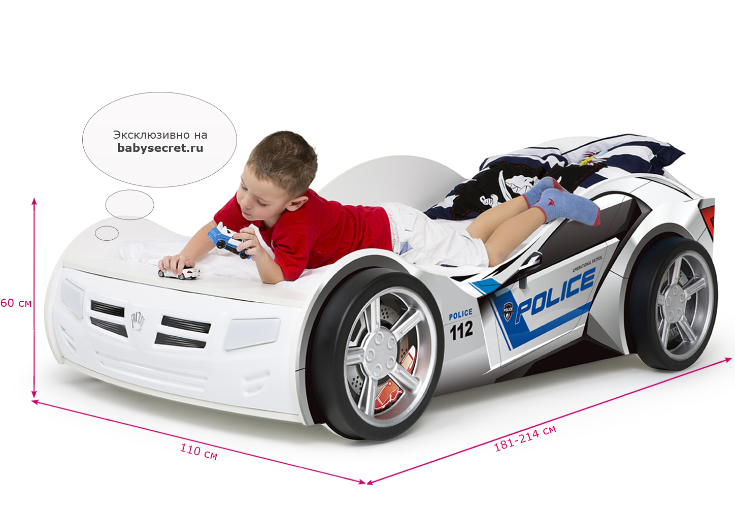 Приятные особенности детской кровати-машины Police:кроватка выполнена в передовом дизайнерском исполнении, соответствующим лучшим веяниям современного стиля. Кровать представляет собой сложную, доведенную и прошедшую испытания модель. Плавные гнутые линии, минимальное количество углов и граней, прочные и экологически безопасные материалы - все в этой модели способствует тому, чтобы ребенок всегда был отдохнувшим, здоровым и в хорошем настроении.Все кровати для детей имеют правильную конструкцию и надежную металлическую раму, соответствуют стандартам качества, снабжены ортопедическим основанием. Это сделано для того, чтобы активные детские игры — прыжки и бег по кровати не были травма опасными для ребёнка.