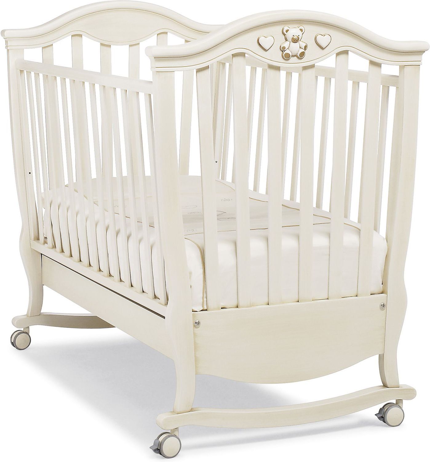 Приятные особенности детскойкроватки Erbesi Brigette: удивительное сочетание изящества и комфорта, которое удивительным образом подойдет для Вашего малыша. Все составные части и компоненты кроватки, во избежание порезов, царапин и ссадин, не имеют острых углов. В кроватке используется ортопедическая сетка из деревянных планок или многослойной перфорированной фанеры (10 отверстий), обеспечивающей правильное потоотделение. Большой ящик в основании кровати, оснащен металлическими направляющими с первоклассным скольжением и блокировкой во избежание его невольного выпадения. В этой кроватке ваш малыш будет быстро и крепко засыпать. Стильный дизайн, простота и изящность форм и нежные цвета - вот чем известный итальянский изготовитель привлек к своей продукции внимание миллионов родителей. Erbesi - это всегда высокое качество исполнения.