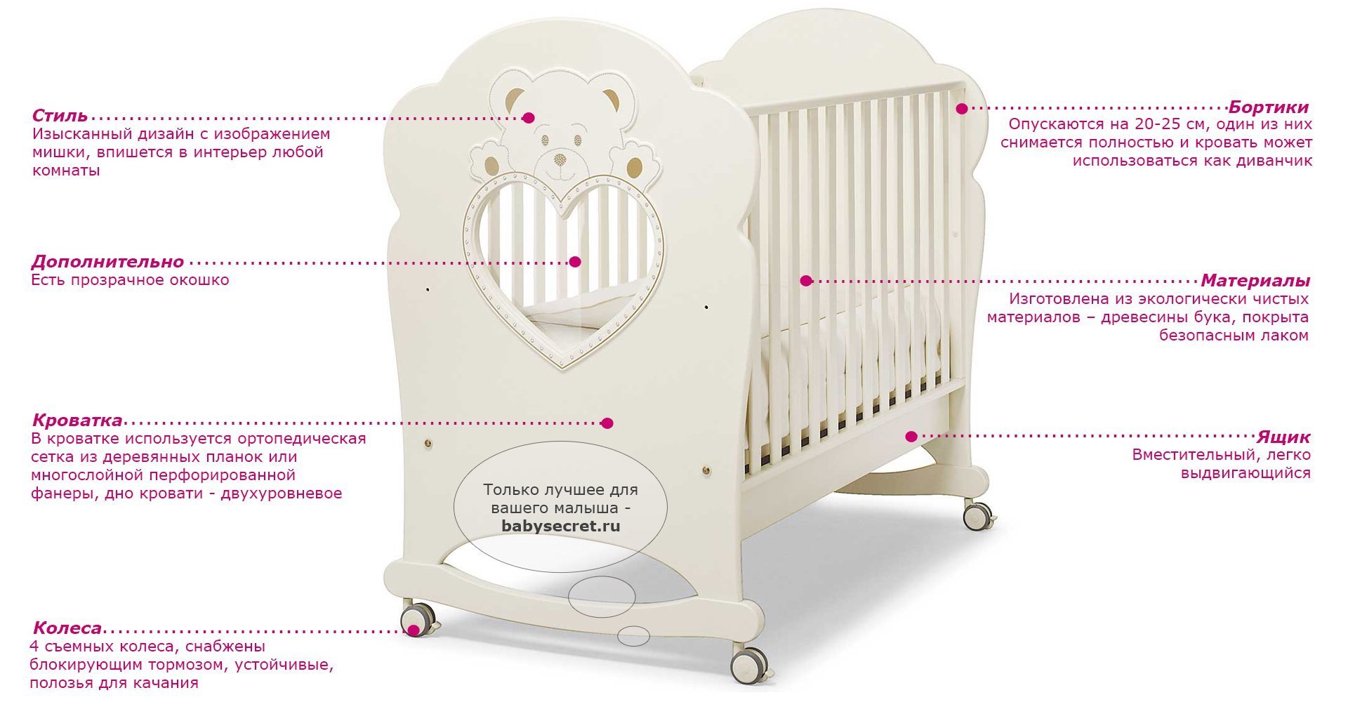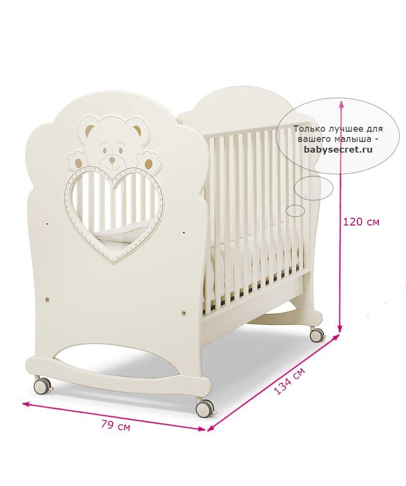 Размеры кроватки:внешние (дxшxв) 134x79x120 см внутренние (для матраса) (шxдxв) 125x65 см