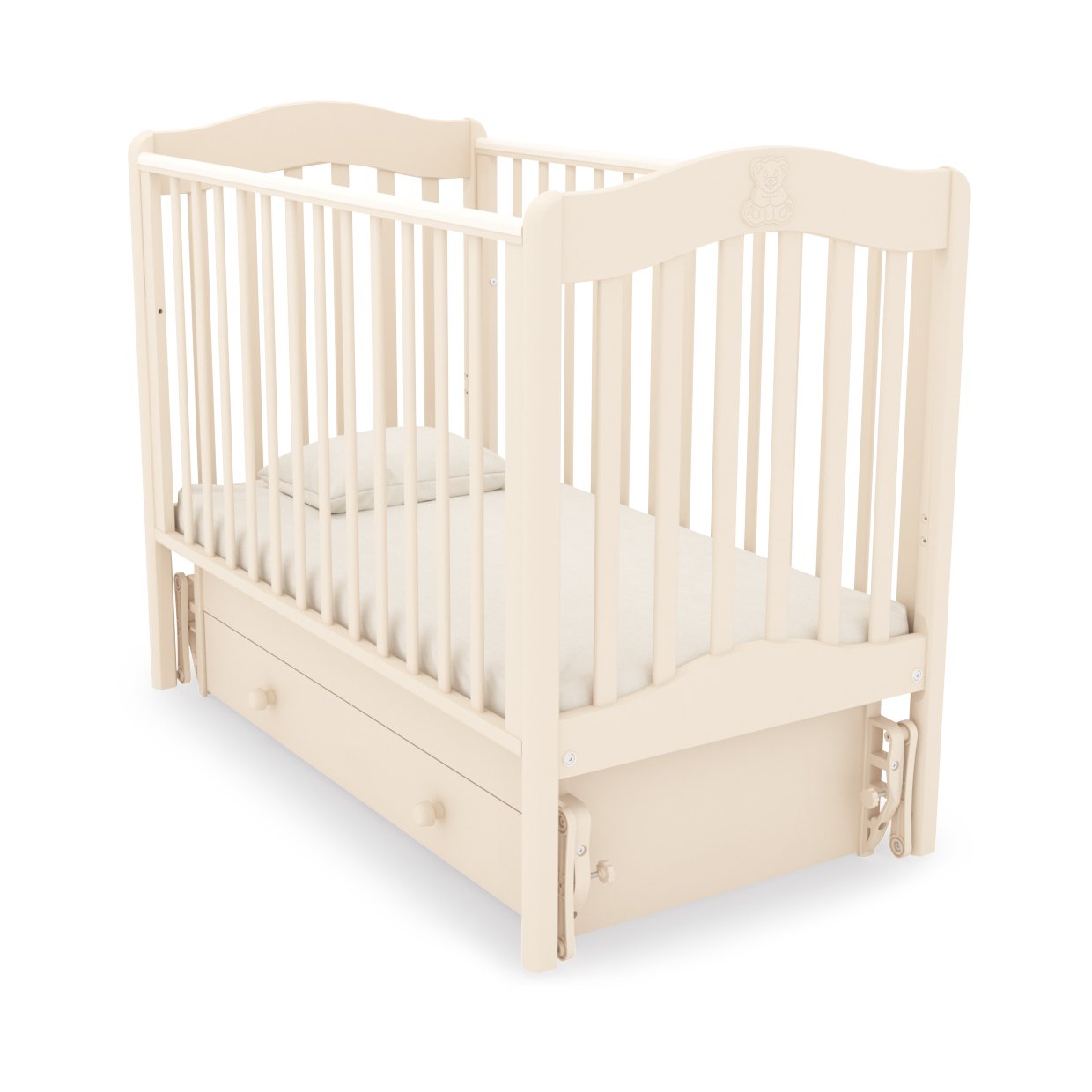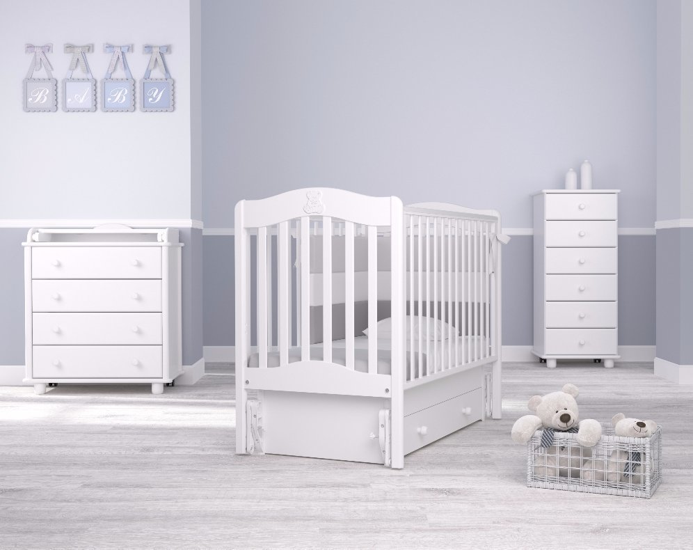 Приятные особенности детской кроватки с универсальным маятником GandylyanВанечка:кроватка Ванечка теперь в новом исполнении - на универсальном маятнике.Универсальный маятник позволяетраскачивать кроватку в 2-х направлениях: продольном (голова-ножки) и поперечном (с боку на бок). Это направление выбирается вами еще при сборке кроватки. Амплитуда раскачивания требует определенного пространства (около 10 см), поэтому, выбирая место для кроватки, обратите внимание на положение ближайших к ней стен и другой мебели. Удобный и вместительный ящик в основании кроватки сделан из прочных листов ДСП. Легкость его скольжения достигнута при помощи специальных направляющих. Они же обеспечивают поглощение звука при выдвижении ящика, что необходимо в моменты сна ребенка в кроватке. Эта удобная функциональная особенность кроватки позволит Вам не загромождать детскую комнату лишними комодами и прикроватными тумбами.