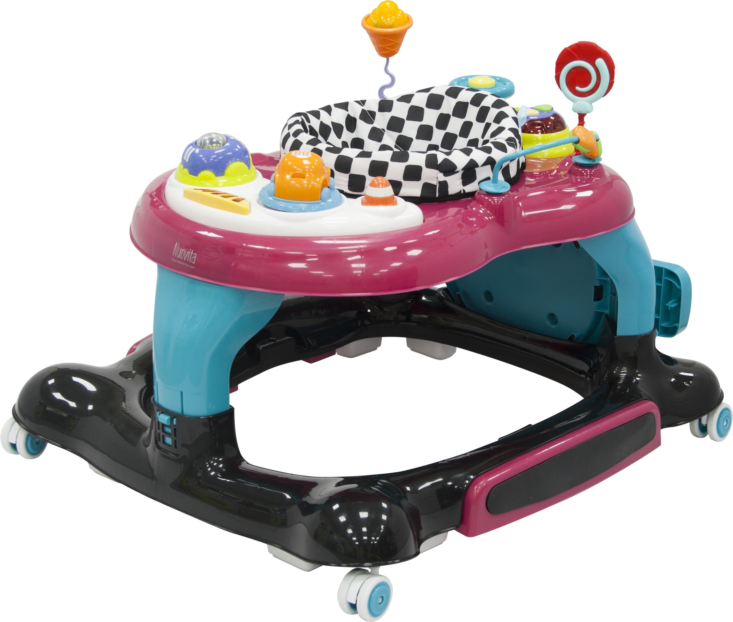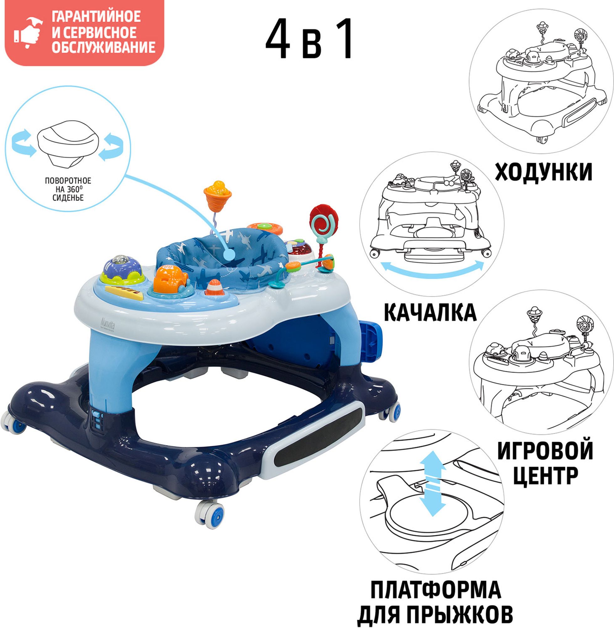 Приятные особенности :Детские ходунки Saltare созданы специалистами итальянского бренда Nuovita и представляют собой современное игровое устройство, которое может выполнять несколько функций. Это удобные ходунки, качалка, батут, а также развивающий игровой центр с электронной консолью.