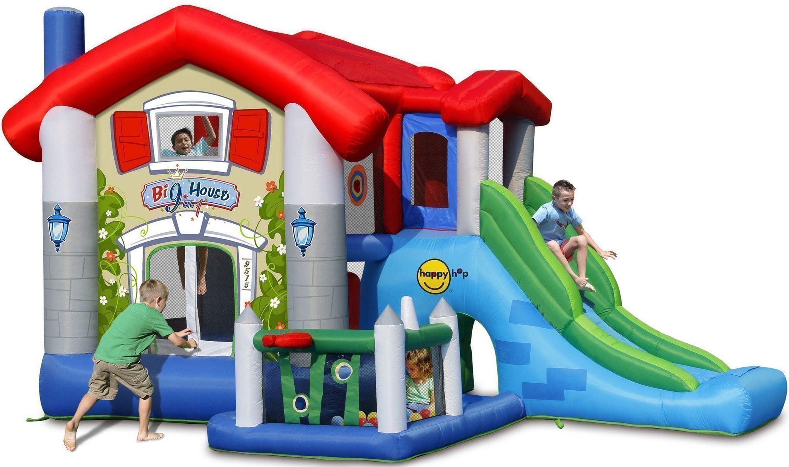 Приятные особенности детского надувного игрового центра Happy Hop В гостях у сказки 9515:свежий воздух, активное движение и хорошее настроение – то, что хочется обеспечить своему ребенку каждый день, особенно когда он растет и развивается! Очень легко этого добиться, если у вас во дворе установлен детский надувной батут. Батут дает возможность организовать досуг сразу группе детей – это очень удобно для родителей. Поверхность для прыжков выполнена из качественного ПВХ ламинированного материала. На горках используется ПВХ ламинированная ткань Оксфорд, обеспечивающая скользящую поверхность. Батут легко установить и демонтировать. Надувается менее чем за минуту. Насос (нагнетатель воздуха) должен работать все время пока дети играют на батуте!