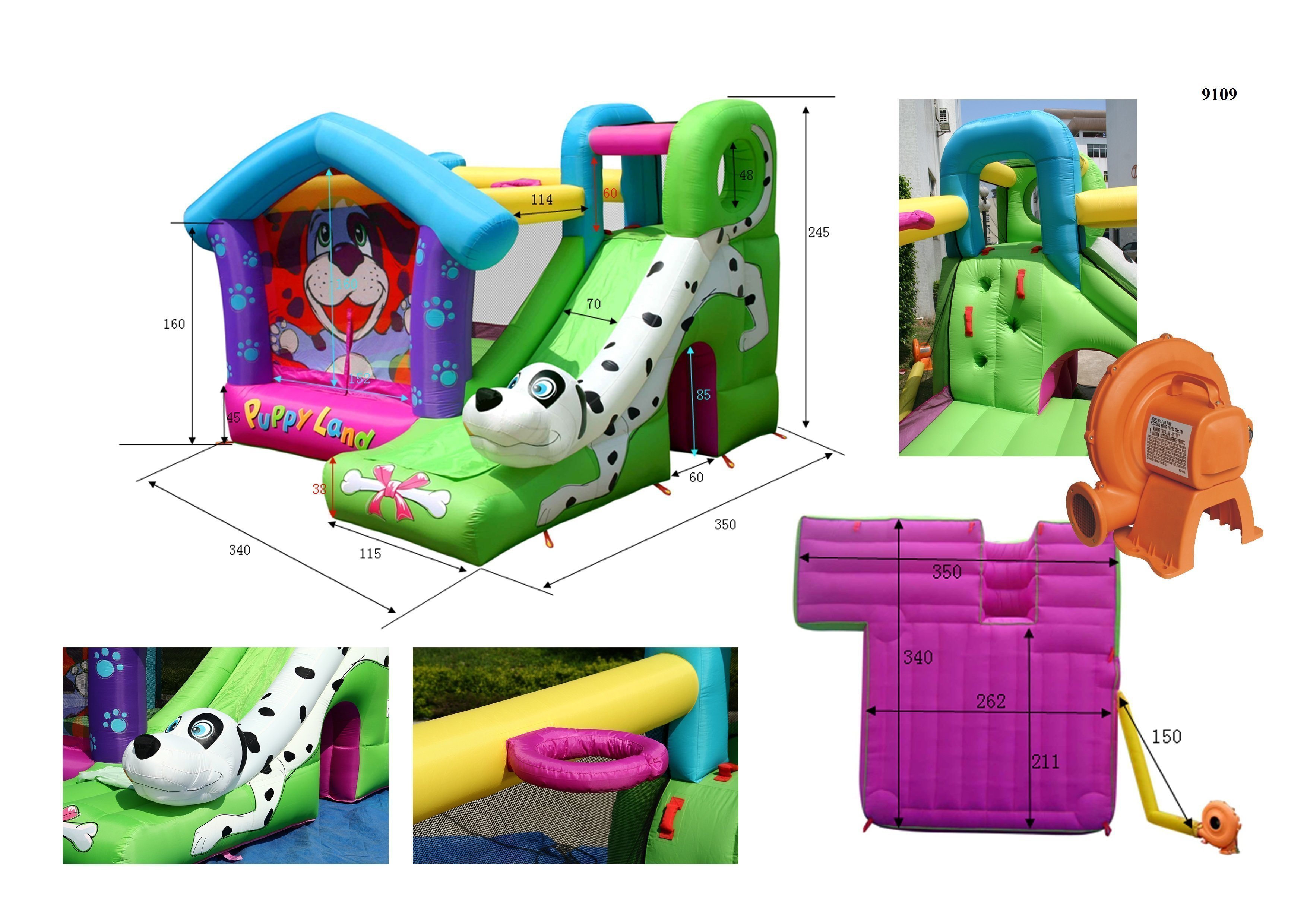 Приятные особенности детского надувного игрового центра Happy Hop Далматинец 9109: изделие, которое подарит детям отличное настроение и сделает времяпрепровождение на свежем воздухе невероятно увлекательным. Так здорово иметь свой собственный игровой центр с большой горкой, батутом и другими элементами для активного отдыха! Яркий и оригинальный дизайн в виде собачки Далматинца, непременно, понравится вашим малышам.Насос (нагнетатель воздуха) должен работать все время пока дети играют на батуте!