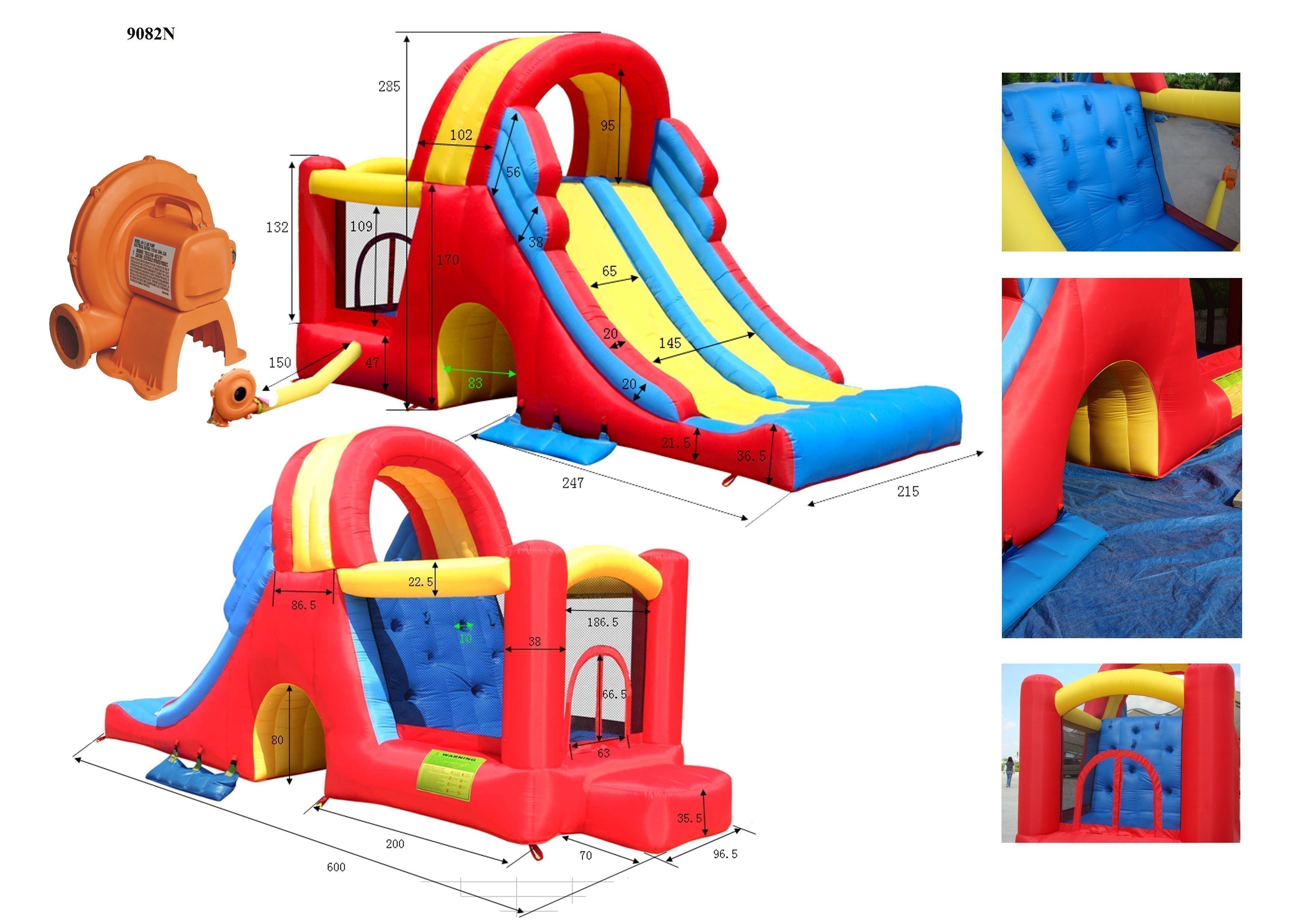 Приятные особенности детского надувного батута Happy Hop:свежий воздух, активное движение и хорошее настроение – то, что хочется обеспечить своему ребенку каждый день, особенно когда он растет и развивается! Очень легко этого добиться, если у вас во дворе установлен детский надувной батут.Батут дает возможность организовать досуг сразу группе детей – это очень удобно для родителей. Поверхность для прыжков выполнена из качественного ПВХ ламинированного материала. На горках используется ПВХ ламинированная ткань Оксфорд, обеспечивающая скользящую поверхность. Батут легко установить и демонтировать. Надувается менее чем за минуту.Насос (нагнетатель воздуха) должен работать все время пока дети играют на батуте!