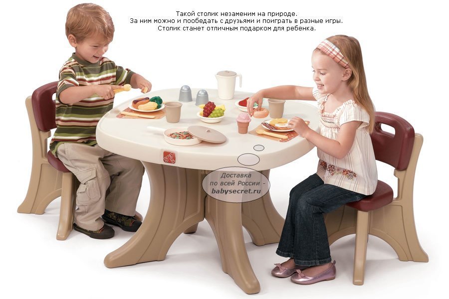 Приятные особенности столика со стульями Step 2: такой столик незаменим на природе. За ним можно и пообедать с друзьями и поиграть в разные игры. Столик станет отличным подарком для ребенка любого возраста. Как малыши, так и подростки придумают для себя интересные игры. А пока дети играют, родители могут спокойно заняться своими делами.