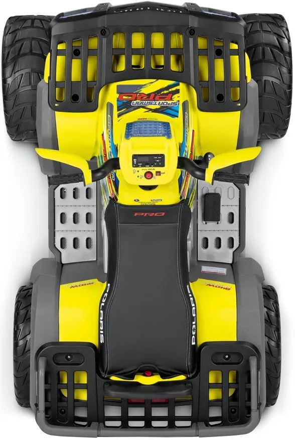 Приятные особенности:Покорять бездорожье веселее и интереснее вместе с другом!Polaris Sportsman 850 Pro — один из самых мощных двухместных внедорожников для детей от 6 лет и старше с резиновыми колесами.Благодаря двум двигателям мощностью 420 W, квадроцикл способен легко преодолеть лужи, грязь и кочки на скорости до 12 км/ч. Он с легкостью преодолевает уклоны до 17%.Много места чтобы удобно поставить ноги, защитный бампер и удобные рукоятки с защитой для рук. Два багажника – передний и задний. Задний багажник с бортиками, за которые пассажир сможет держаться.
