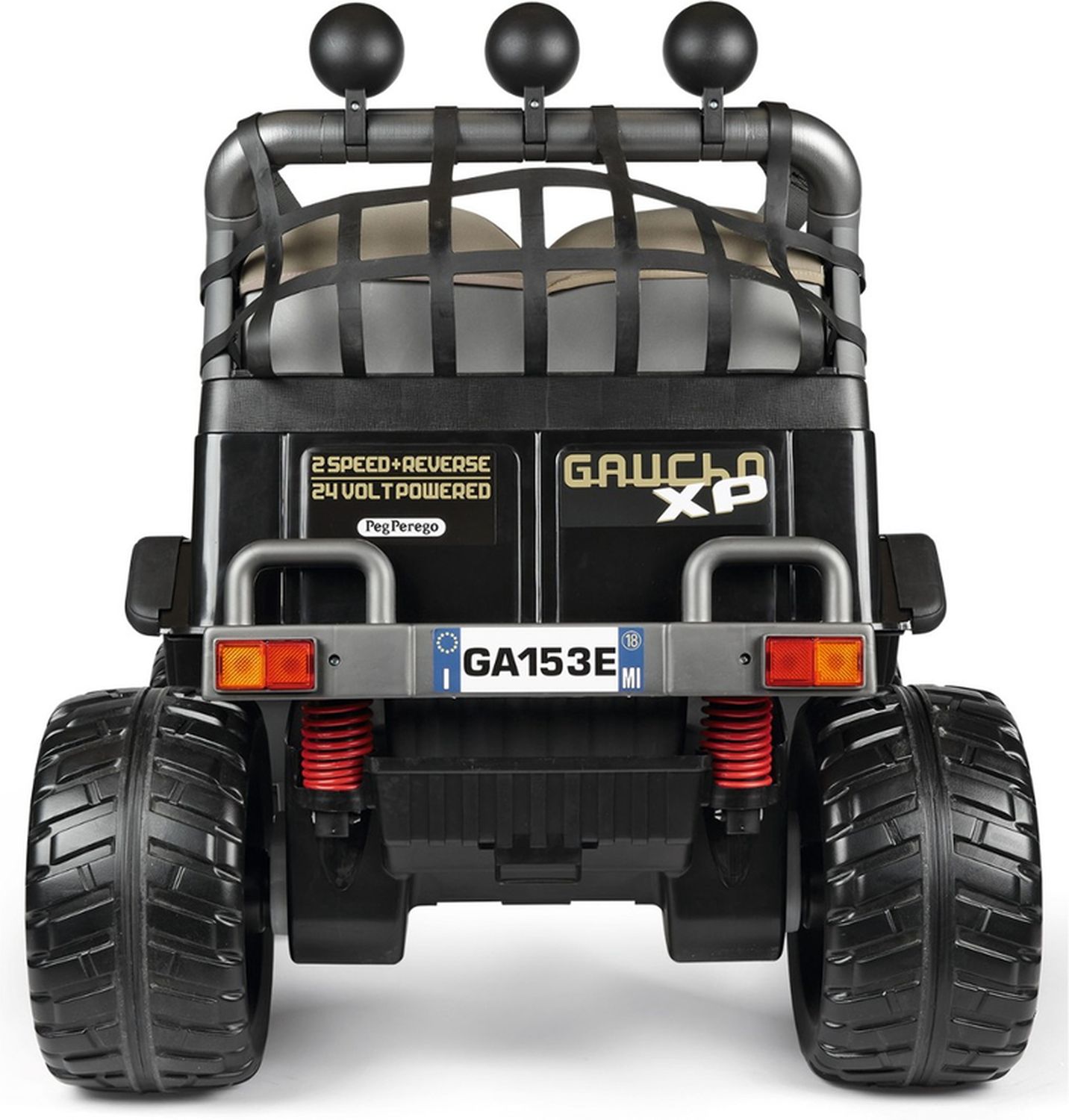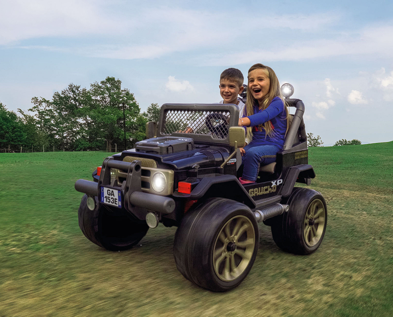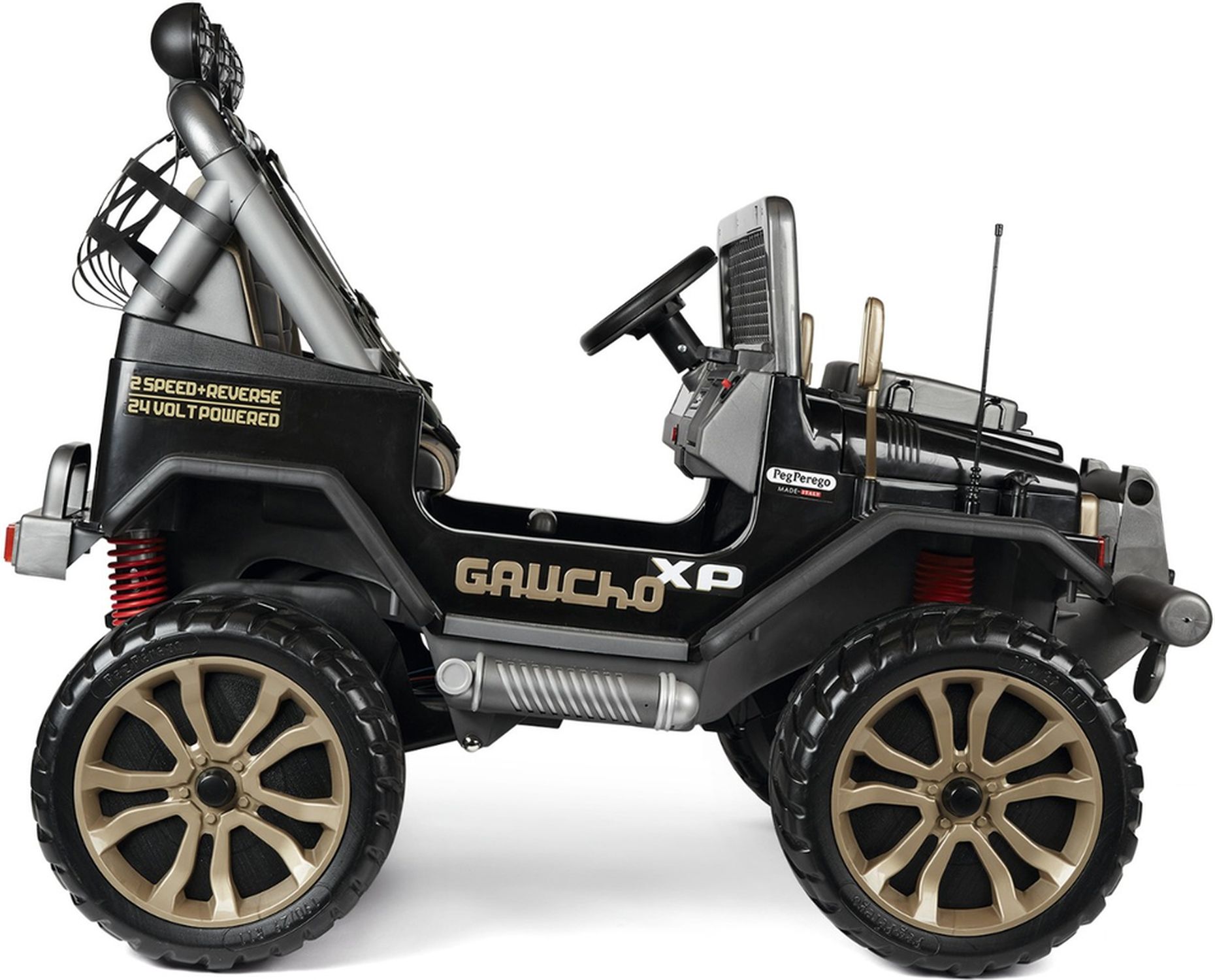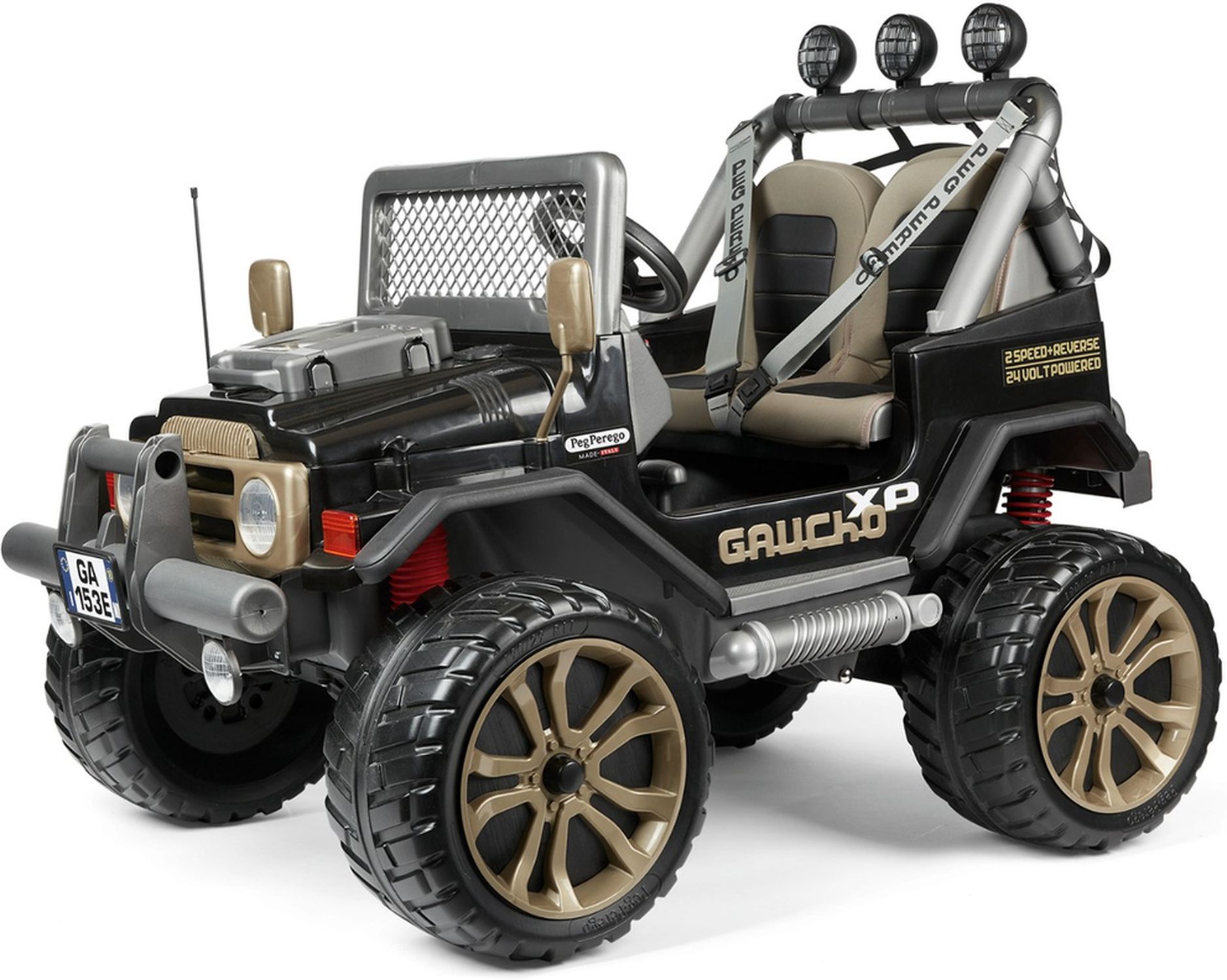 Приятные особенности : Детский электромобильPeg Perego Gaucho XP -предназначен для передвижения по ровной и пересеченной местности. На таком джипе вашему чаду по плечу не только ровный асфальт, но и настоящее бездорожье с выбоинами и кочками.Электромобиль является довольно точной копией настоящего джипа. Он имеет две передние передачи и одну заднюю, ключ зажигания, ветровое стекло и зеркало заднего вида. Электрокар также оборудован клаксоном и настоящей магнитолой, способной воспроизводить музыкальные файлы MP3 формата и FM-радио. С таким оснащением вашему ребенку будет вдвойне весело гонять на электромобиле. Юный покоритель бездорожья (а данный электромобиль рассчитан на детей возрастом от 3-х до 8-ми лет) сможет отправиться в поездку вместе с другом, ведь в электрокаре предусмотрено и пассажирское сиденье.