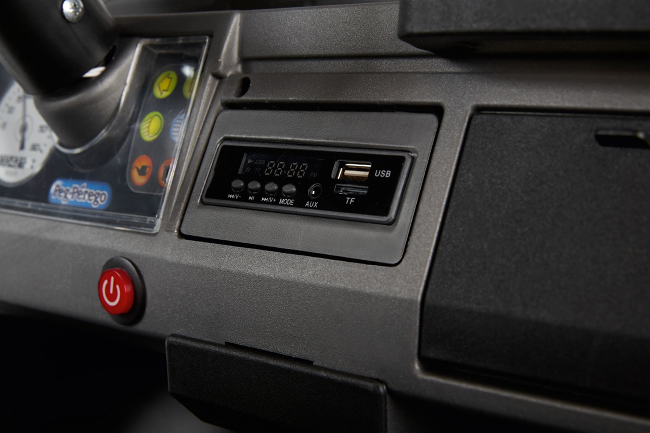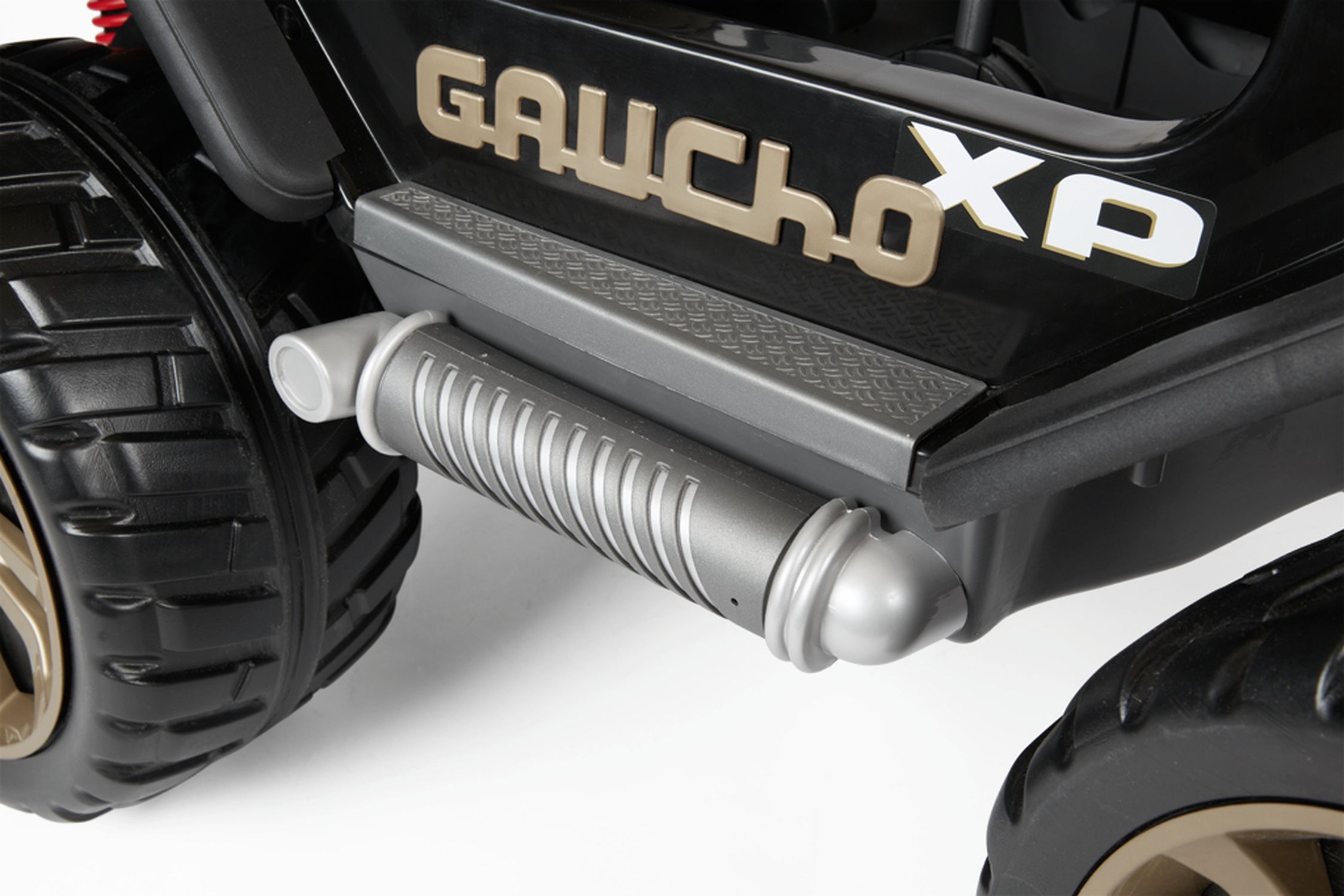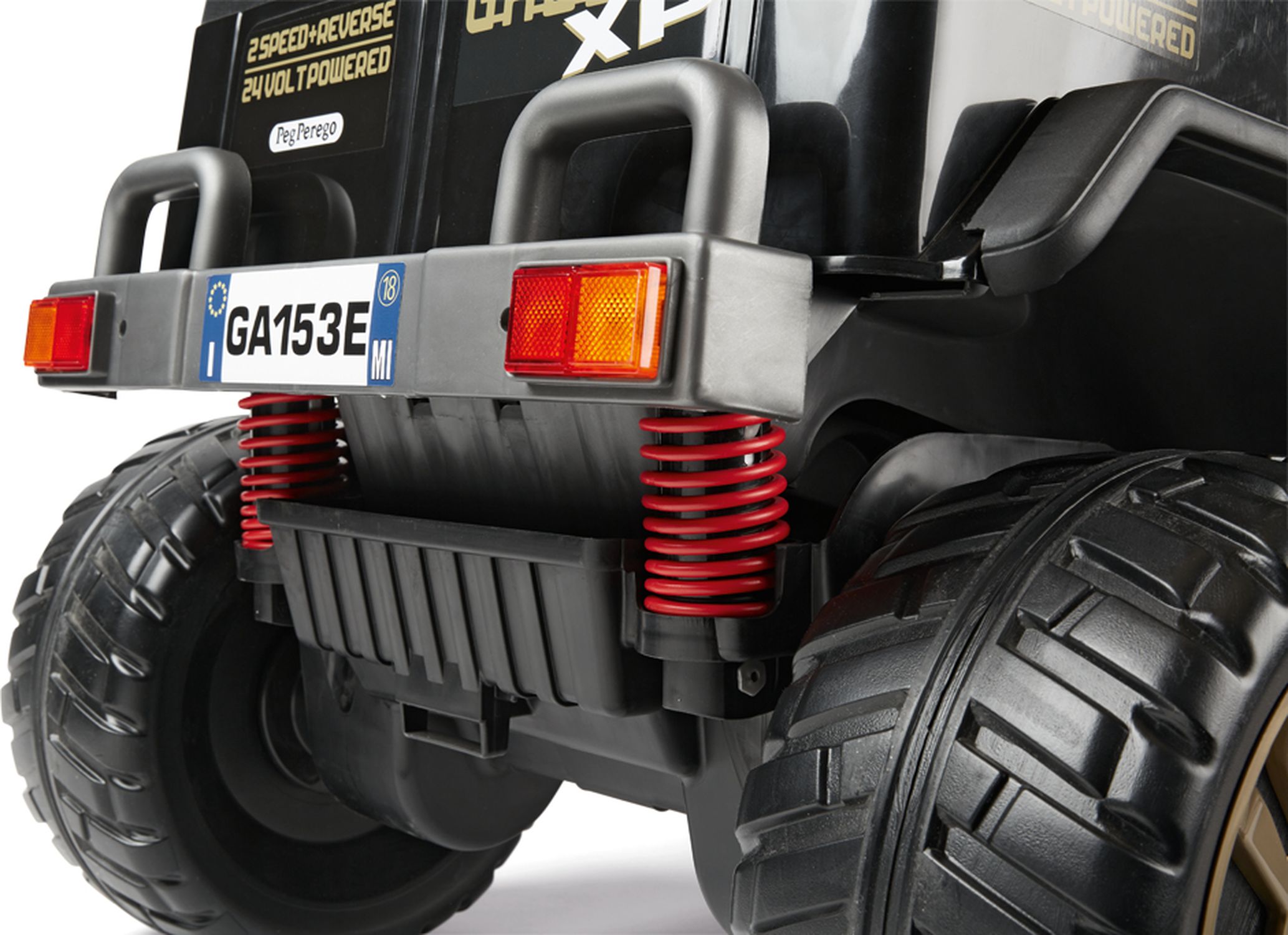 Приятные особенности : Детский электромобильPeg Perego Gaucho XP -предназначен для передвижения по ровной и пересеченной местности. На таком джипе вашему чаду по плечу не только ровный асфальт, но и настоящее бездорожье с выбоинами и кочками.Электромобиль является довольно точной копией настоящего джипа. Он имеет две передние передачи и одну заднюю, ключ зажигания, ветровое стекло и зеркало заднего вида. Электрокар также оборудован клаксоном и настоящей магнитолой, способной воспроизводить музыкальные файлы MP3 формата и FM-радио. С таким оснащением вашему ребенку будет вдвойне весело гонять на электромобиле. Юный покоритель бездорожья (а данный электромобиль рассчитан на детей возрастом от 3-х до 8-ми лет) сможет отправиться в поездку вместе с другом, ведь в электрокаре предусмотрено и пассажирское сиденье.