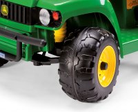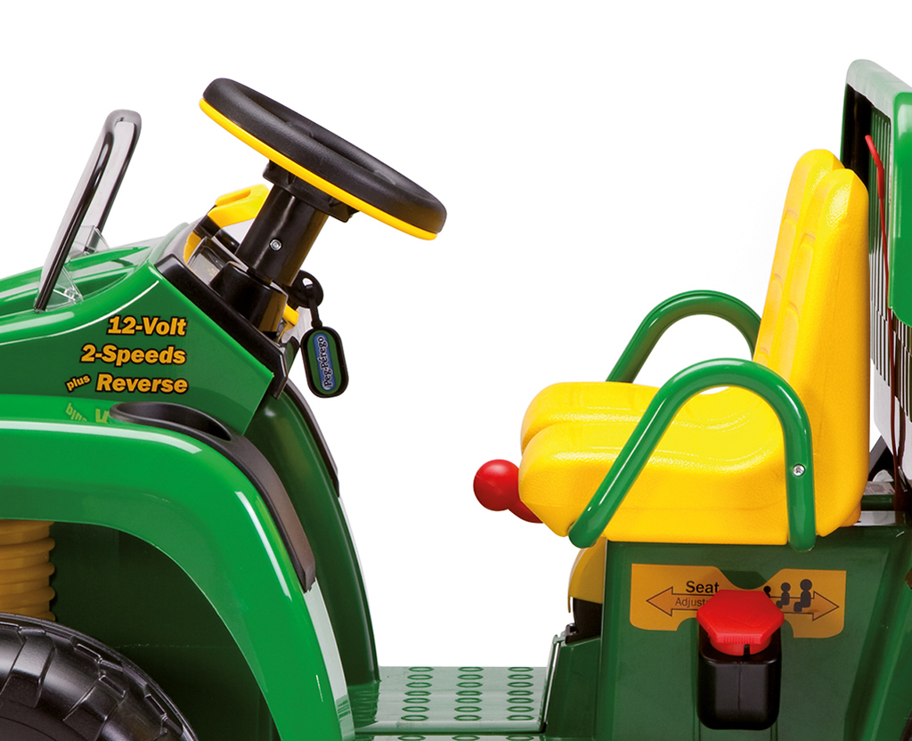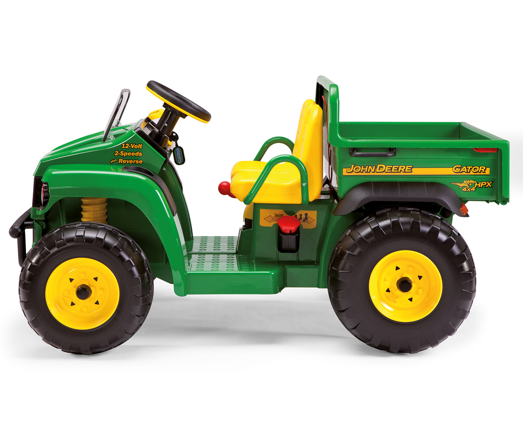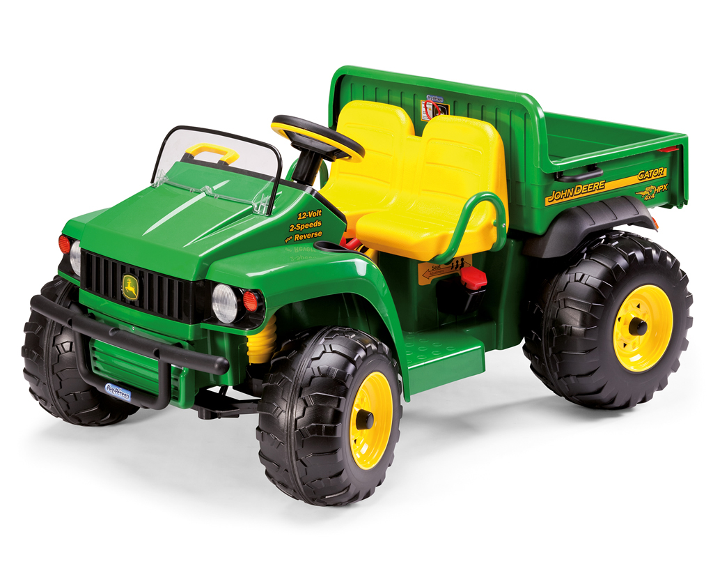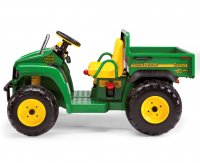 Приятные особенности : Детский электромобиль Peg Perego John Deere Gator HPXскопирован с легендарного американского грузовика по официальной лицензии компании John Deere, мирового лидера по производству сельскохозяйственной и строительной техники. И ездить на нём, одному ли, вдвоём с братом, сестрой или другом – полный восторг! Широкий корпус из прочного пластика и массивные колёса на протекторах придают грузовику большую устойчивость и маневренную проходимость. Пара двигателей общей мощностью 350 Вт помогут не только быстро ехать, но и преодолевать сложные поверхности с уклоном до 17%. Бардачок, в который можно положить рацию, яблоко или бутерброд, игрушечный ключ зажигания, ветровое стекло, звуковой сигнал на руле – все эти реалистичные детали «как у взрослых», только ещё больше порадуют счастливых владельцев собственного транспортного средства. После нужно будет заменить аккумулятор запасным или поставить электромобиль на зарядку на 12-15 часов.В подъёмном кузове можно возить до 10 кг разного груза.