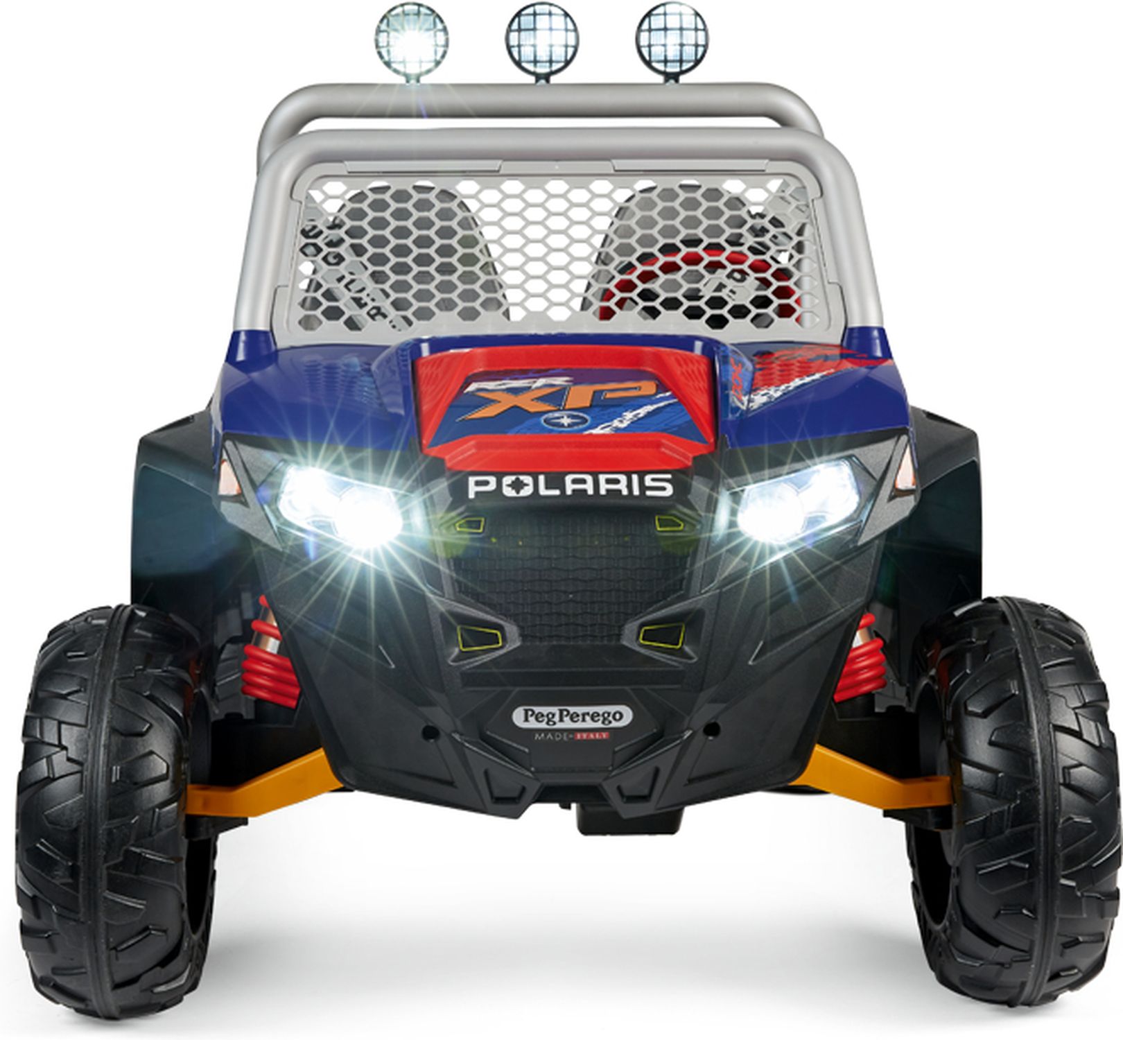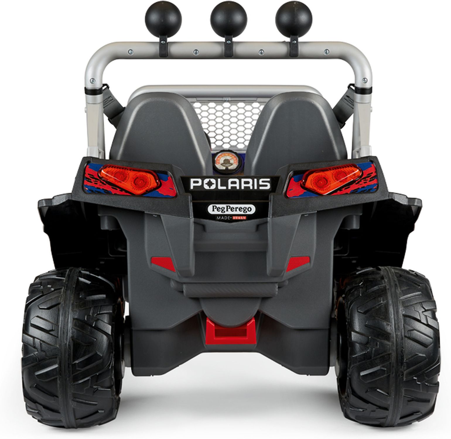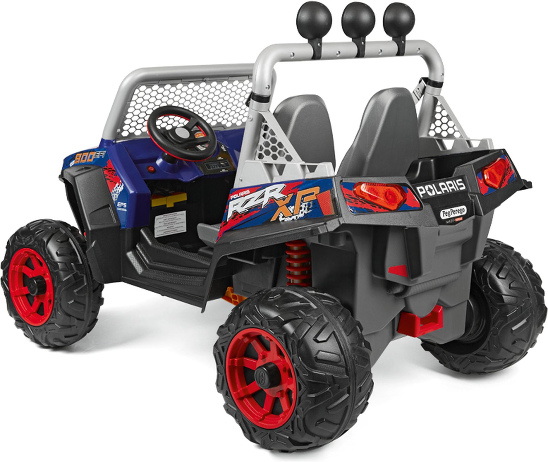 Приятные особенности :Детский электромобиль Peg-Perego Polaris RZR 900 XP имеет внешний вид полностью соответствующий настоящему джипу: массивные колеса, мощный бампер, имитация противотуманных фар, передние амортизаторы, клаксон на руле.На этом детском джипе-внедорожнике ваш малыш сможет колесить по ровным поверхностям и дорогам, а также покорять бездорожье. Неровная дорога, ямки и корни деревьев теперь не помеха для юного водителя. А чтобы ему было веселее, стоит захватить попутчика, ведь электромобиль имеет два сиденья: для водителя и его пассажира. А в багажнике электромобиля можно перевозить необходимые вещи, например, игрушки.