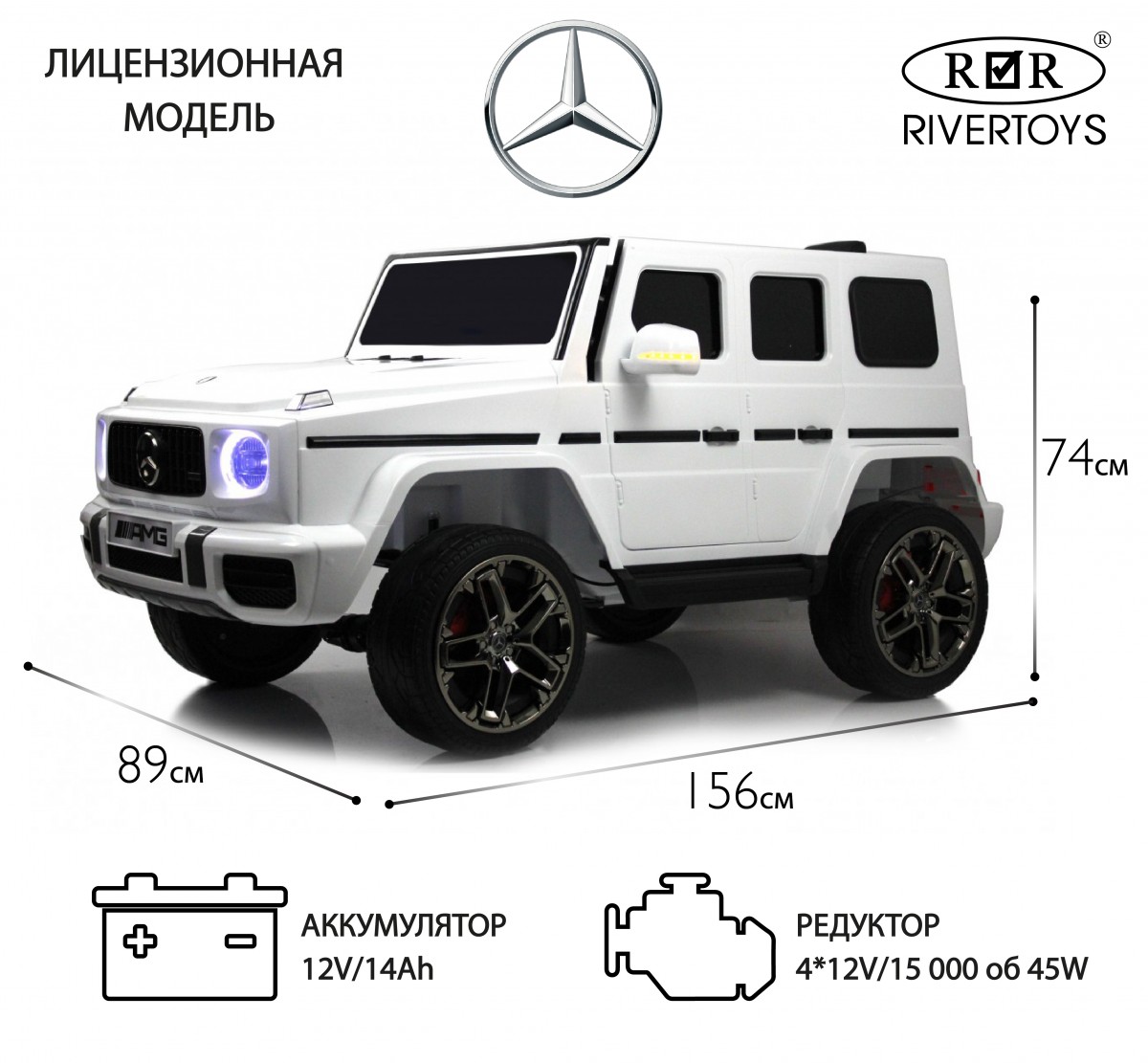 Детский электромобиль Rivertoys Mercedes-AMG G63 (S307) Белый Детский электромобиль Rivertoys Mercedes-AMG G63 (S307) Вишневый глянецДетский электромобиль Rivertoys Mercedes-AMG G63 (S307) ЧерныйДетский электромобиль Rivertoys Mercedes-AMG G63 (S307) Черный глянец