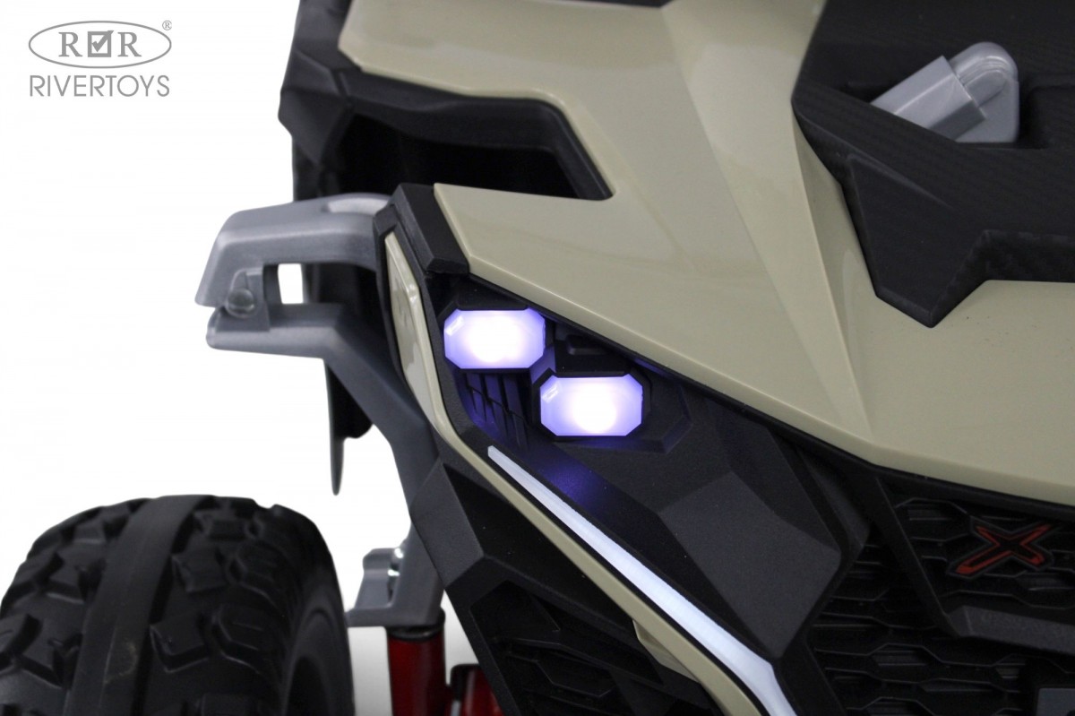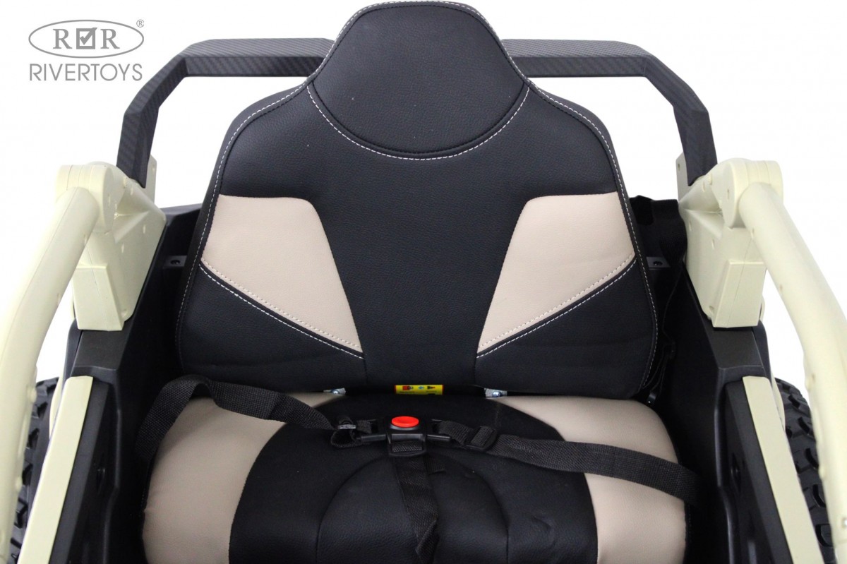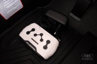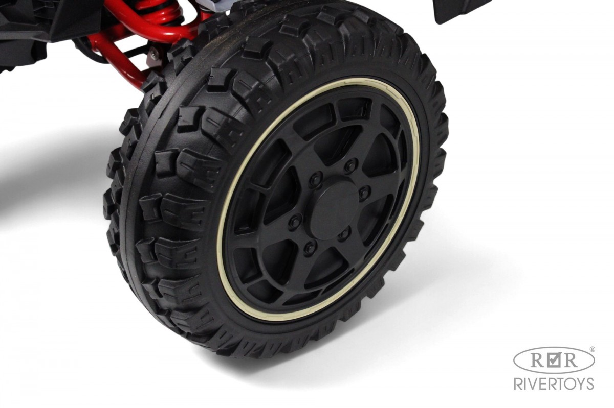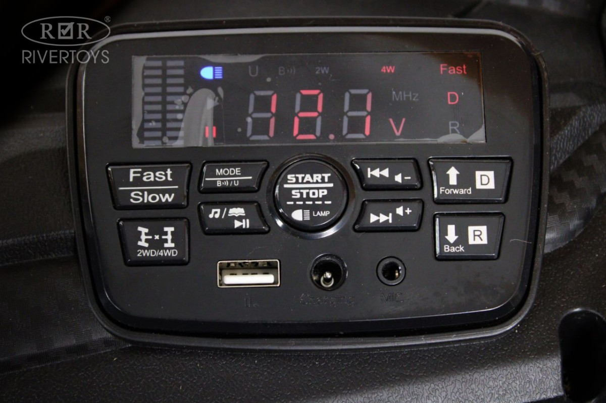 Особенности модели: Педаль тормоза, багажник в задней части, имитация карбоновых вставок, управление с телефона с отдельного приложения (скачать можно по QR коду), переключение 2WD/4WD (Отдельная кнопка на медиа-панели. При переключении 2WD, передние колеса движутся свободным ходом), индикатор напряжения аккумулятора на медиа-панели, индикатор громкости на медиа-панели, чехол в комплекте, открываются двери, откидываются верхние дуги, имитация буксировочной серьги на переднем бампере,