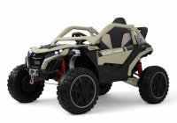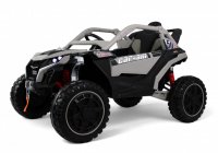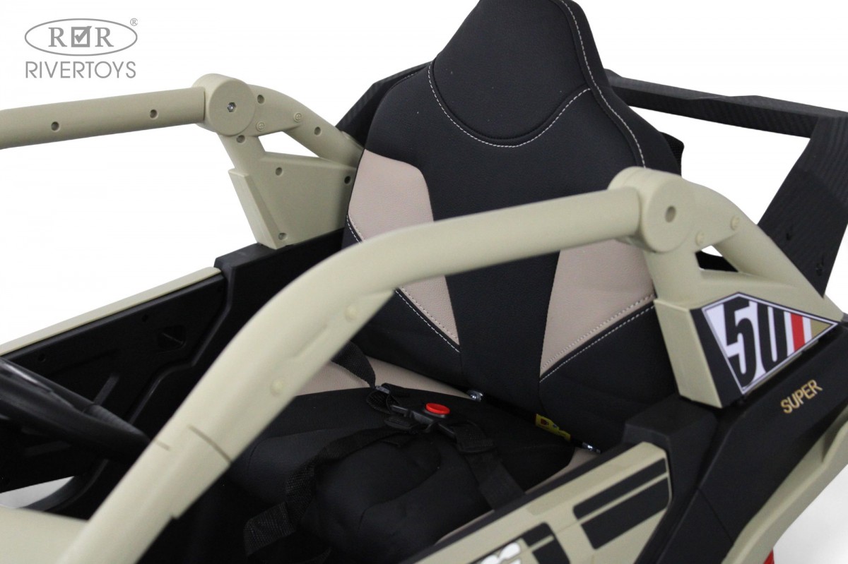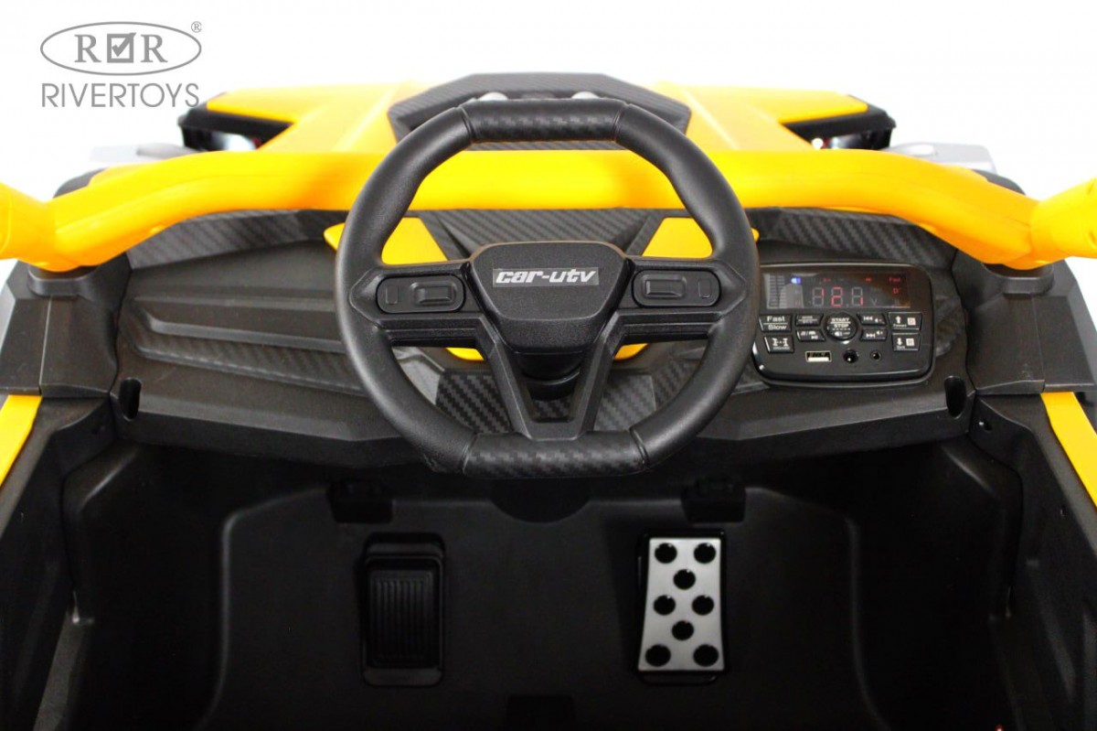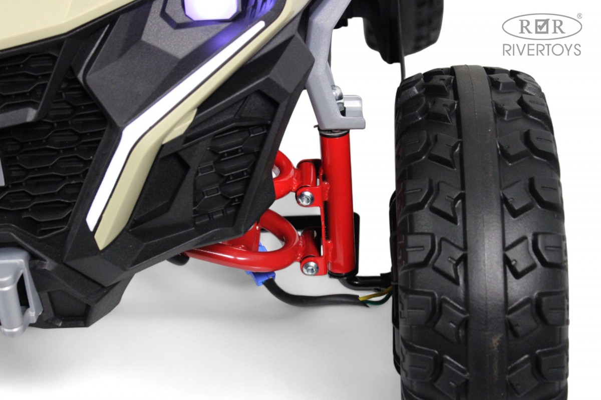 Особенности модели: Педаль тормоза, багажник в задней части, имитация карбоновых вставок, управление с телефона с отдельного приложения (скачать можно по QR коду), переключение 2WD/4WD (Отдельная кнопка на медиа-панели. При переключении 2WD, передние колеса движутся свободным ходом), индикатор напряжения аккумулятора на медиа-панели, индикатор громкости на медиа-панели, чехол в комплекте, открываются двери, откидываются верхние дуги, имитация буксировочной серьги на переднем бампере,