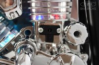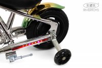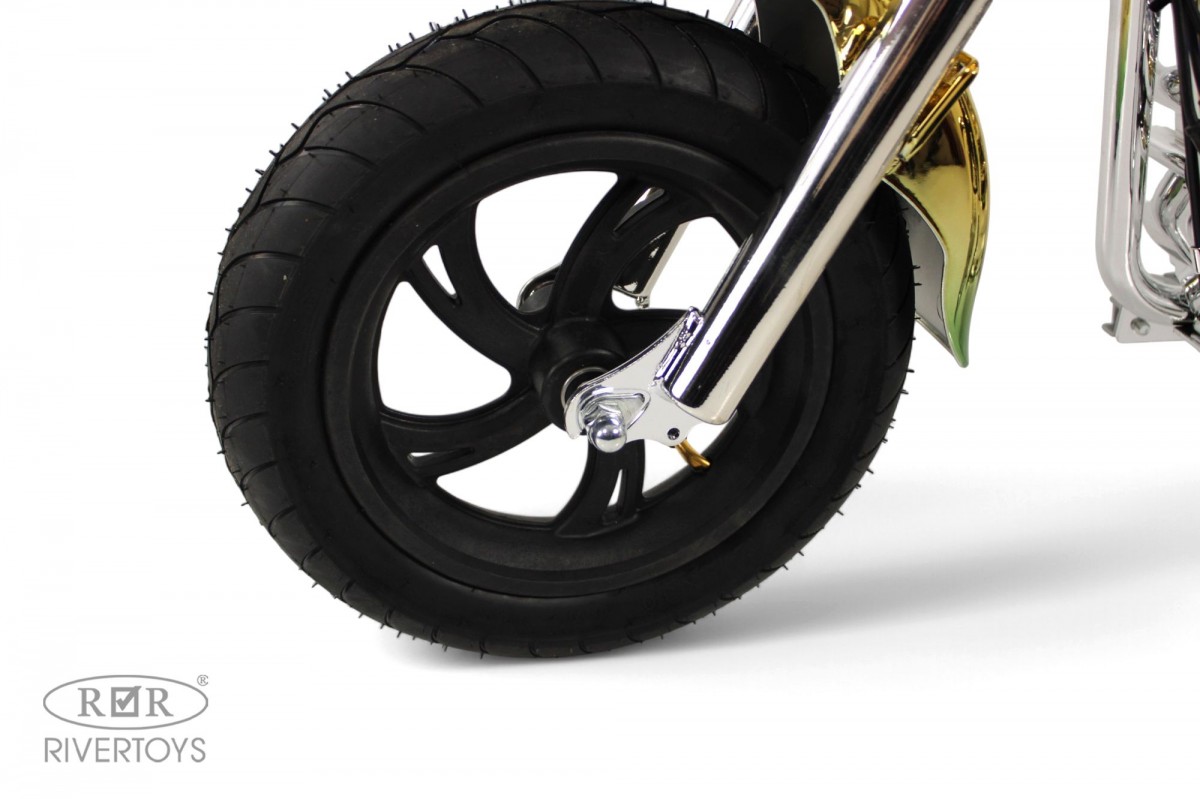 Особенности модели: хромовое покрытие, металлический корпус, выдвижные подножки, подсветка с двух сторон на выхлопных трубах, подсветка на корпусе , ручной тормоз, металлическая подножка, спидометр на медиа-панели с подсветкой, мотор встроен в колесо