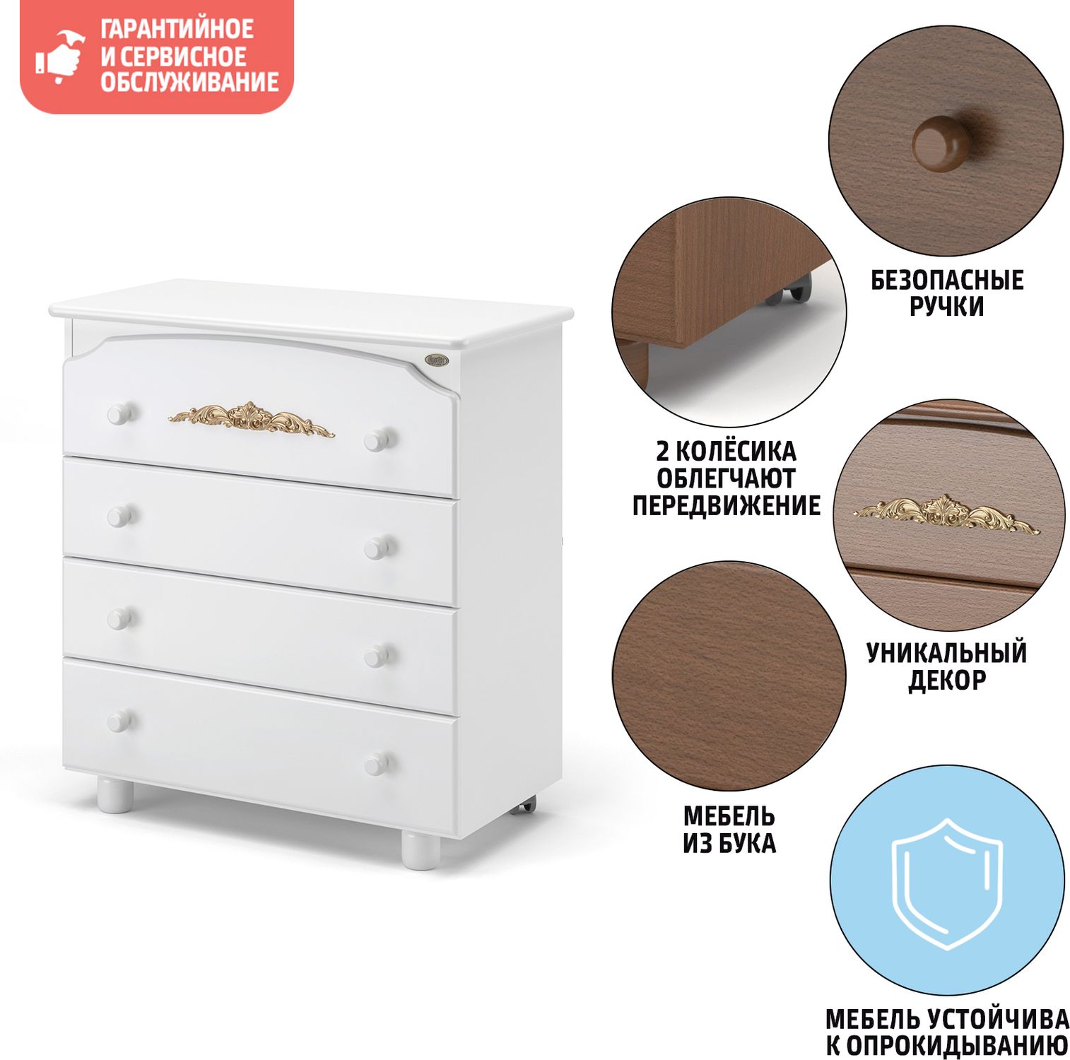 Приятные особенности :Nuovita Furore – это детский комод с ящиками и съемной пеленальной доской, разработанный в Италии и изготовленный в России. Безупречно высокое качество, продуманность каждой детали и доступная для покупателя цена – результат взаимодействия итальянских и российских специалистов.